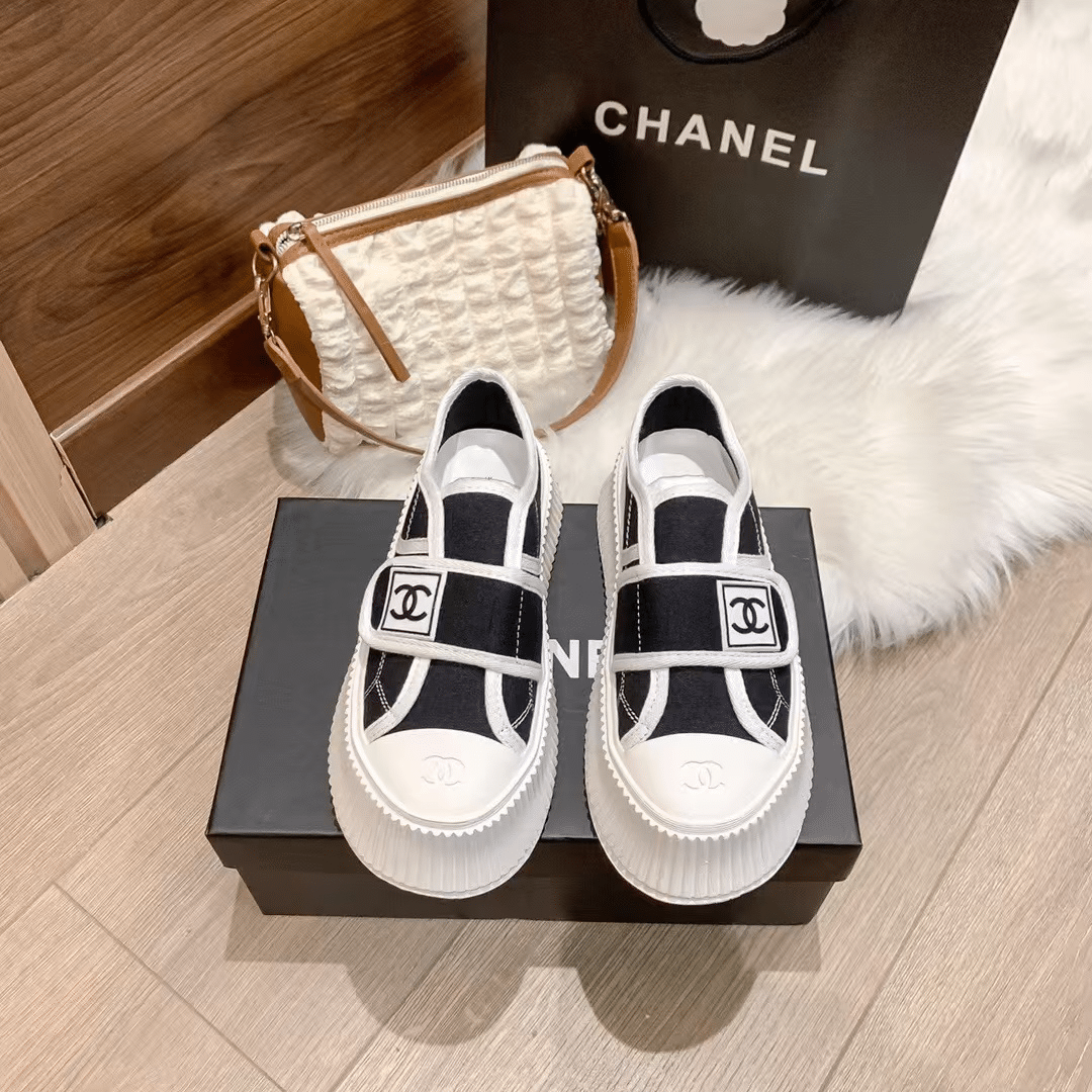 Chanel White Cc Cap Toe Slipon Sneaker Black