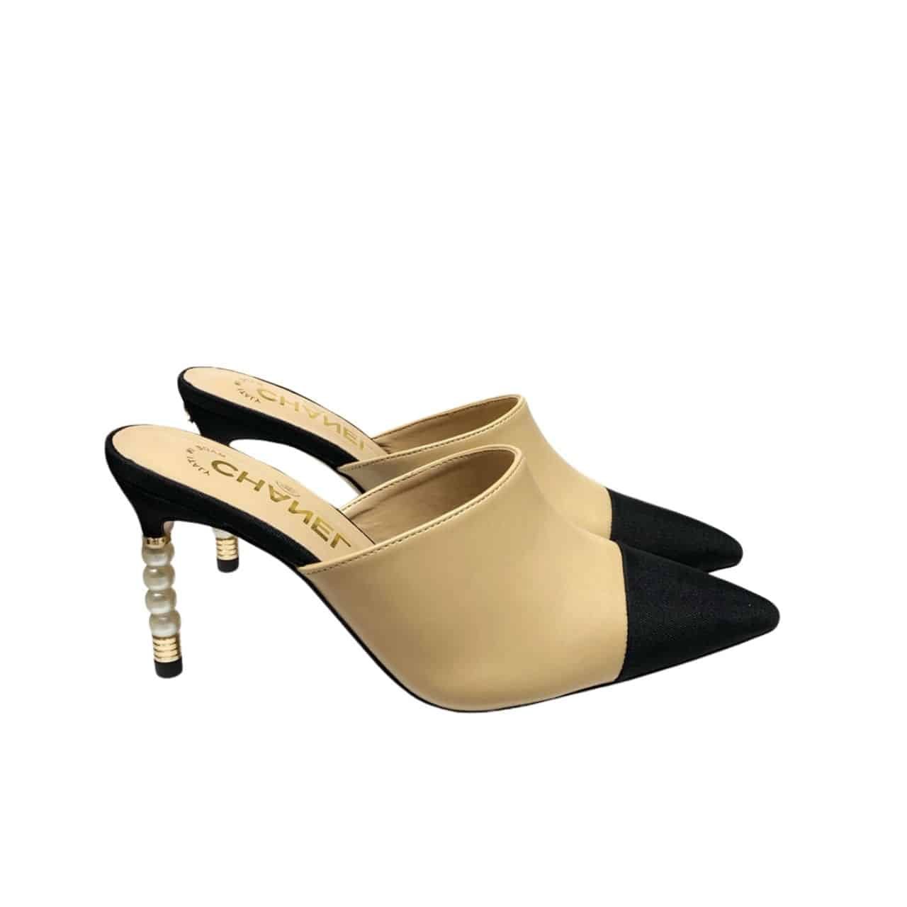 Chanel Mules Grosgrain Beige