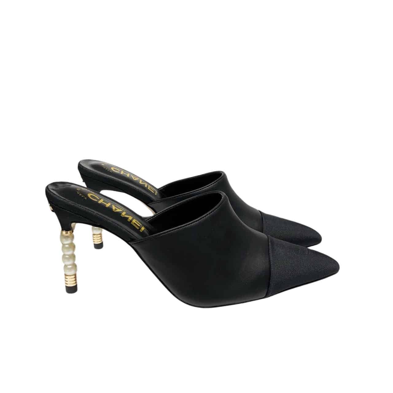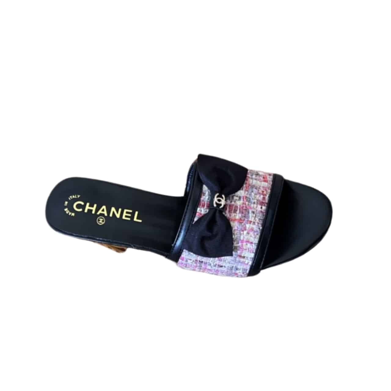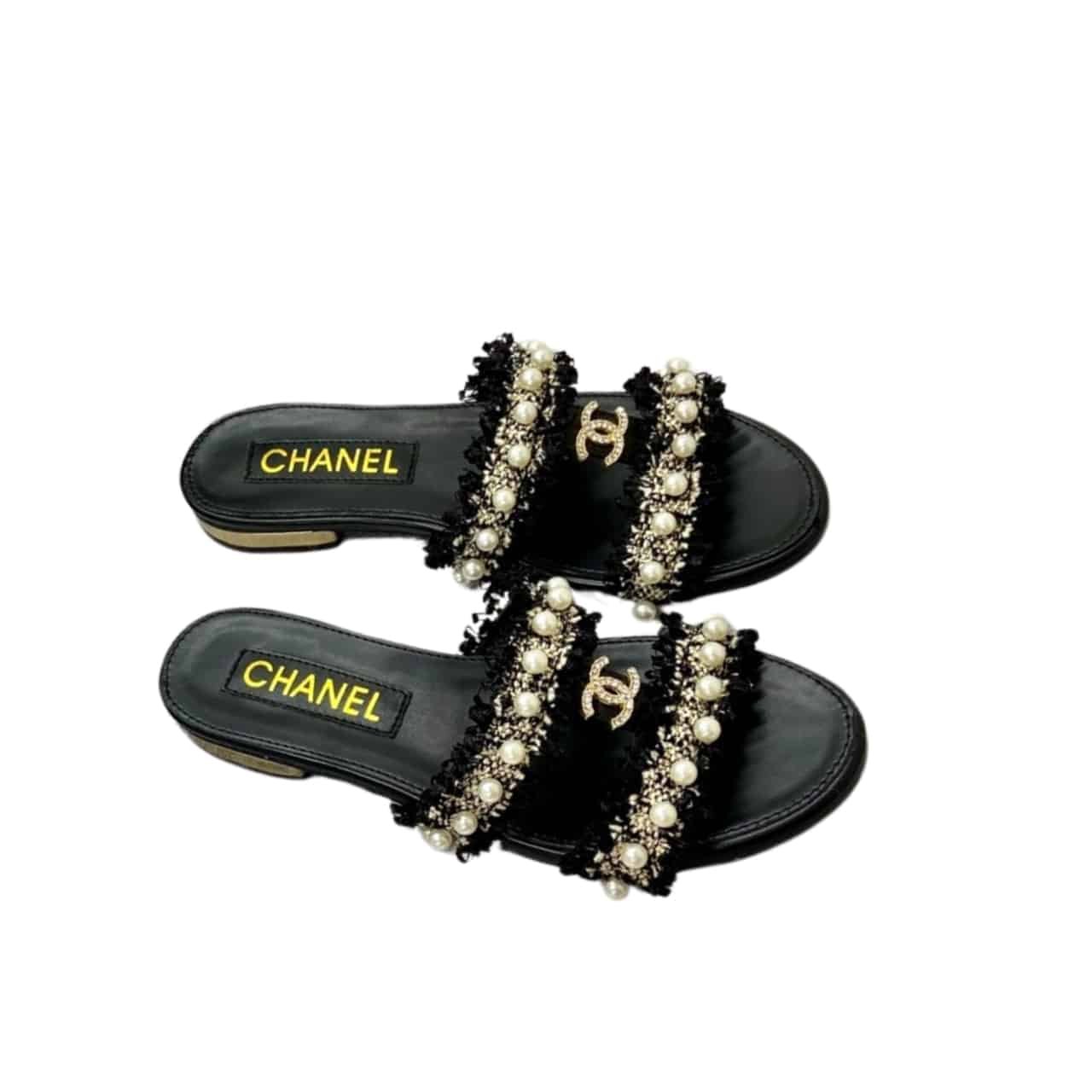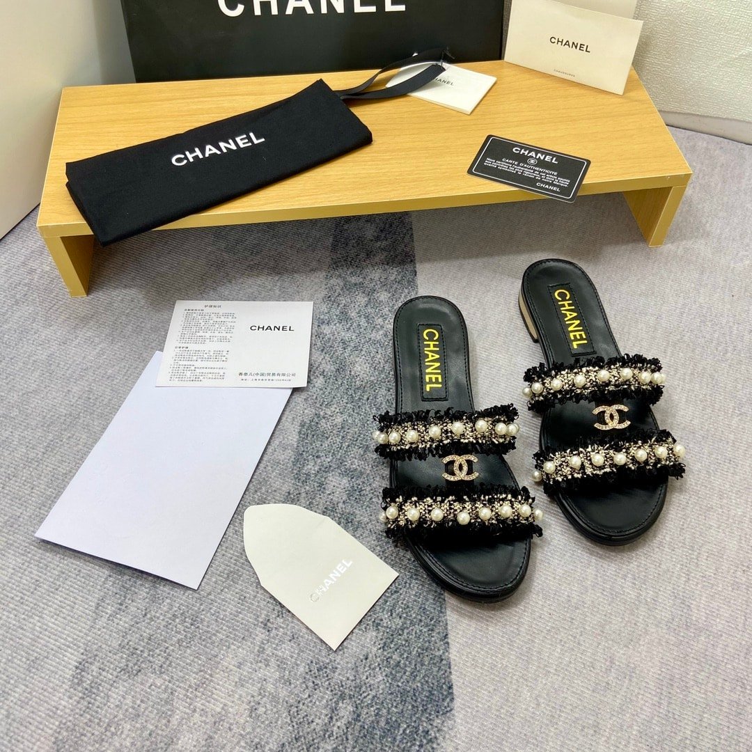 Chanel Mule Slippers Pearl Tweed Black