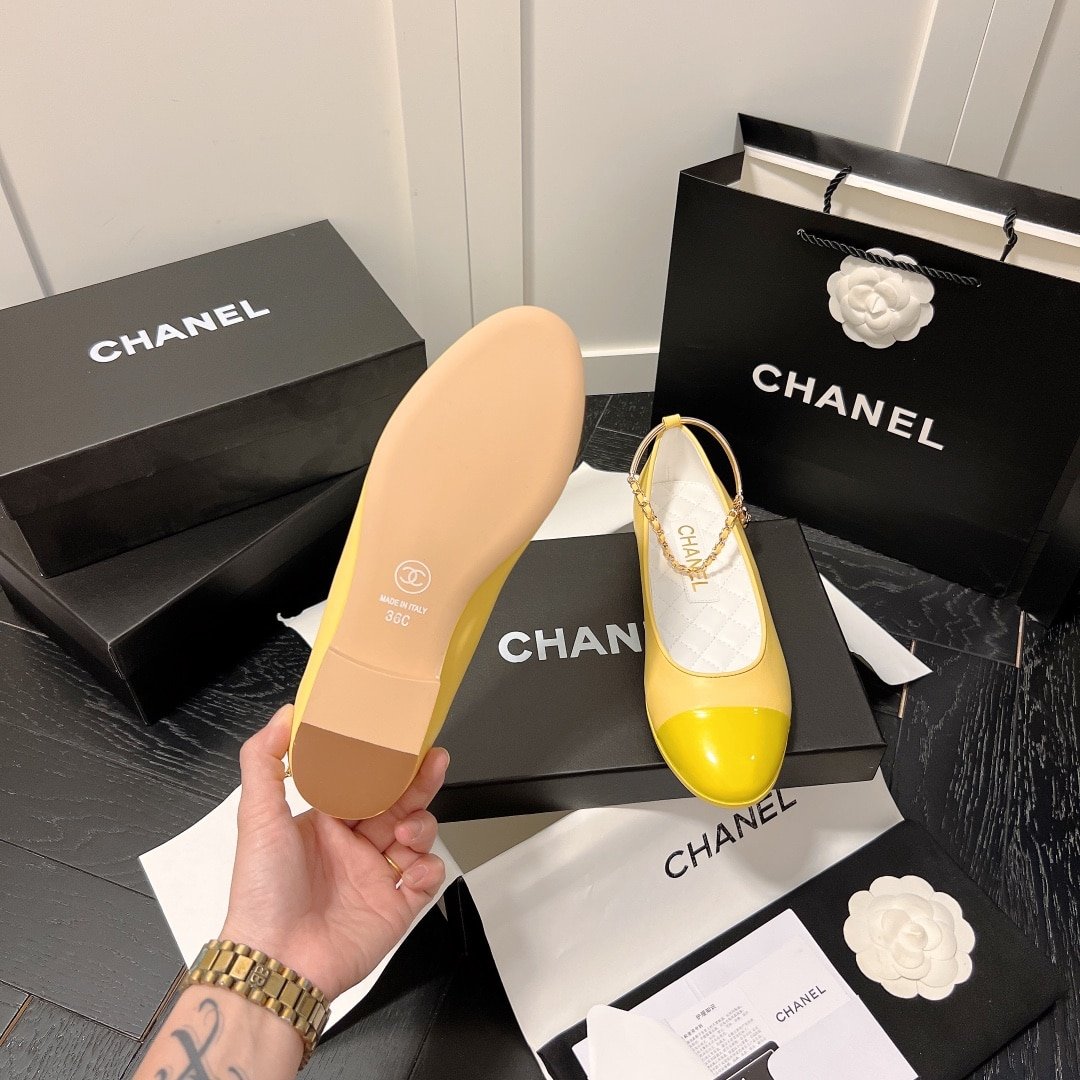 Chanel Interlocking Cc Logo Ballet Flats Yellow