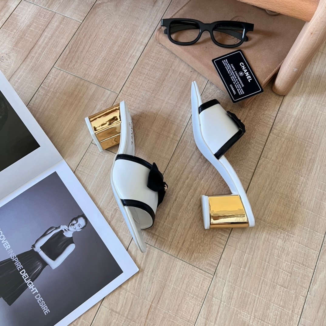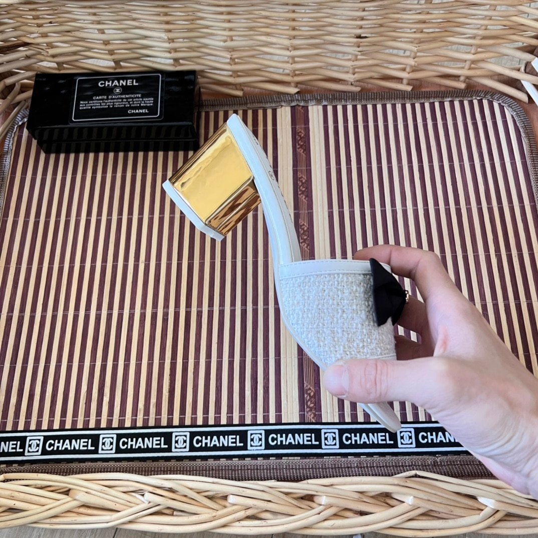 Chanel Mules Grosgrain White