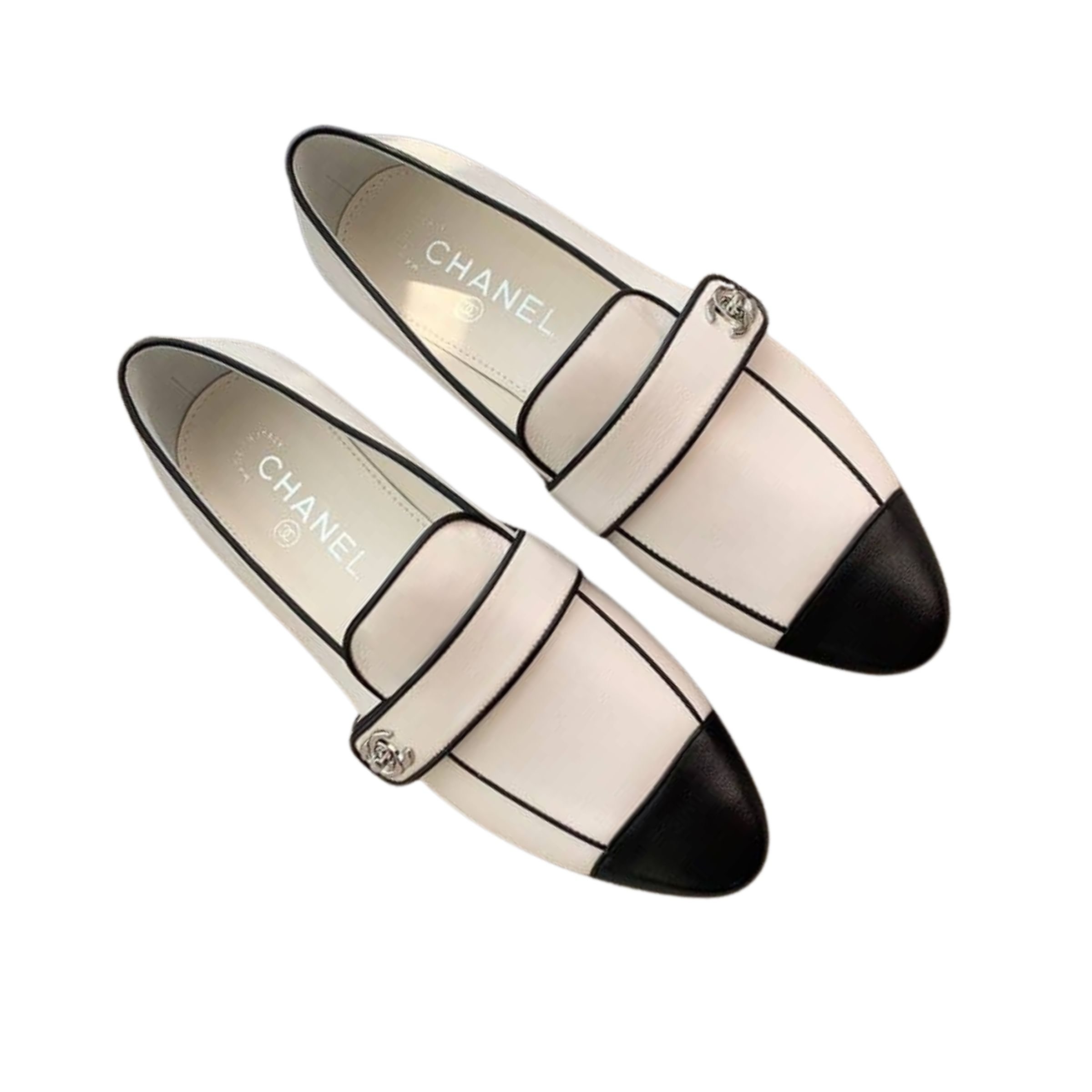 Chanel Leather Cc Cap Toe Slip On Loafers White