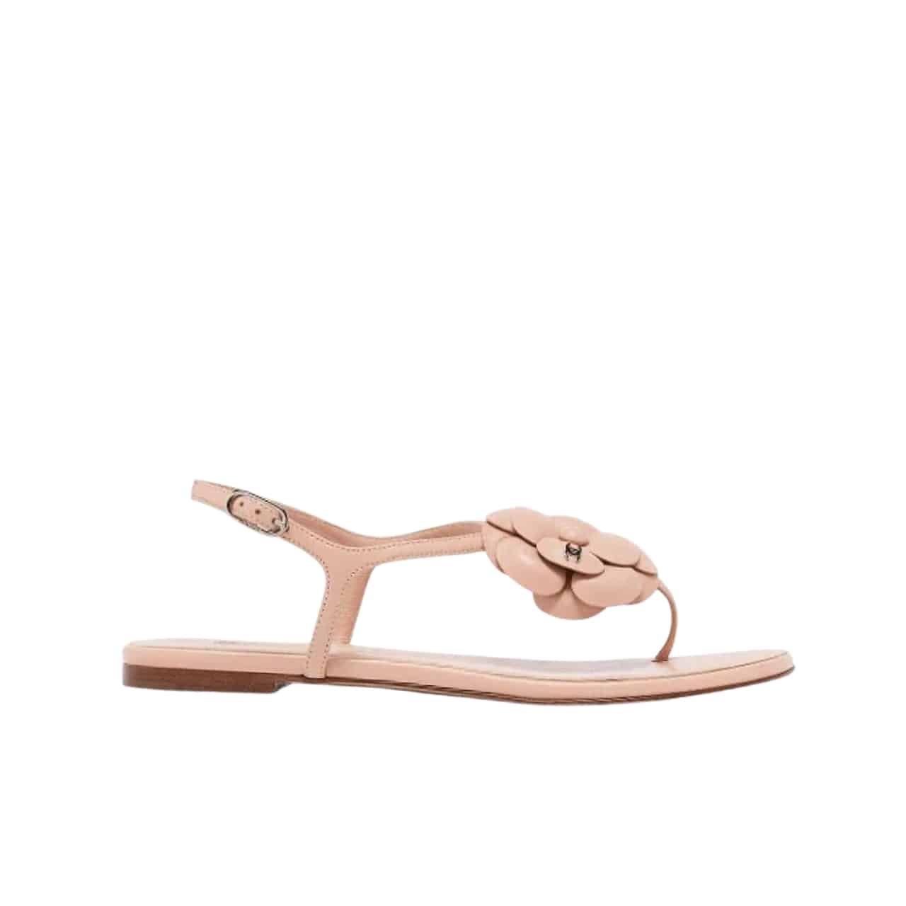 Chanel Pink Quilted Leather With White Camellia Cc Logo Bow Thong Sandals