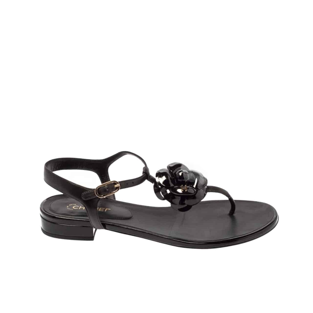 Chanel Jelly Black Rubber Camellia Sandals Black