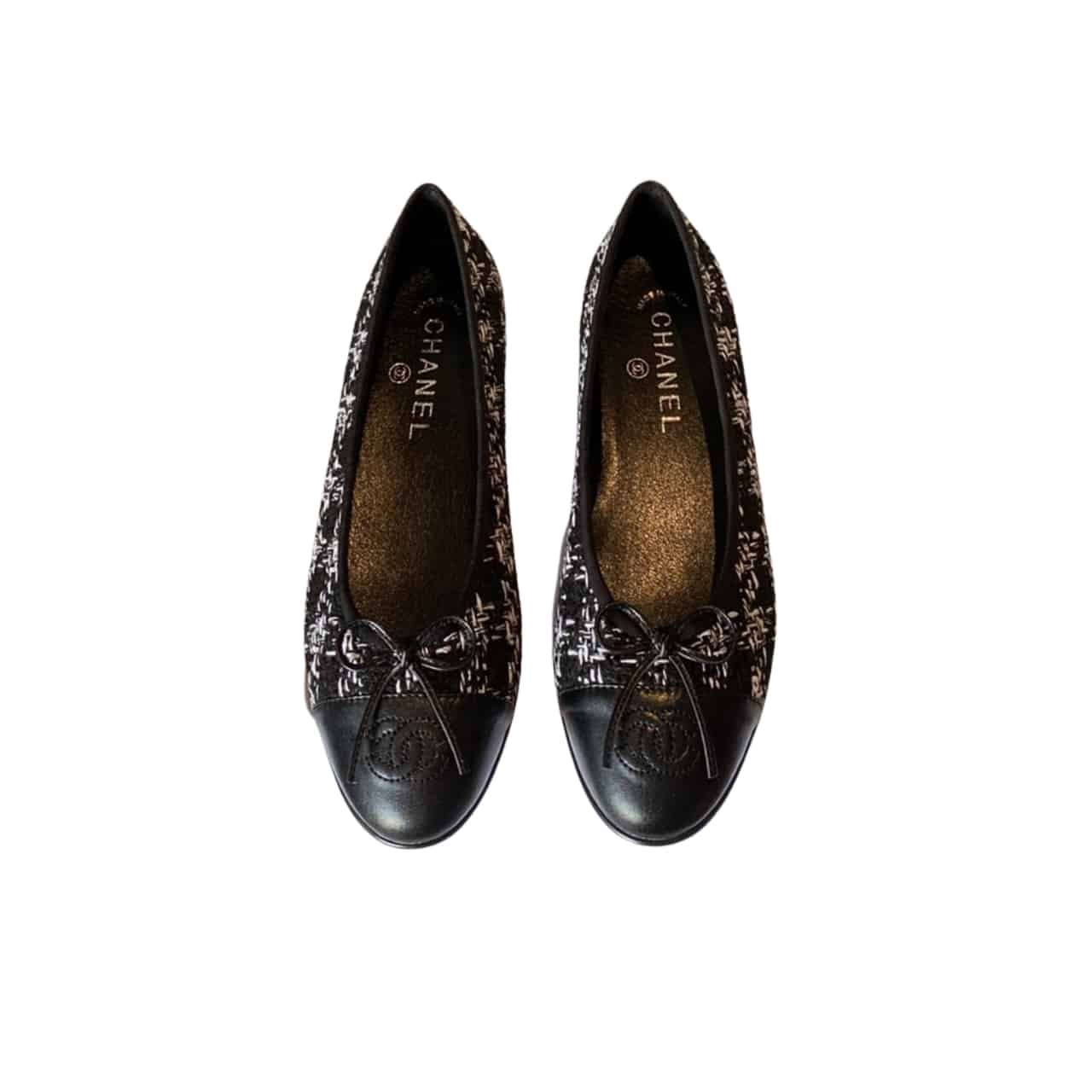 Chanel Interlocking Cc Logo Ballet Flats Black White