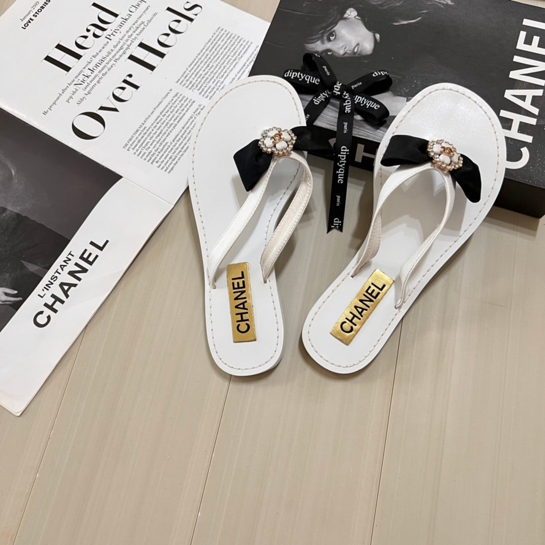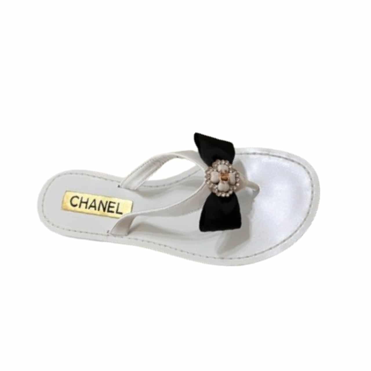 Chanel Thong Slide White Camellia Cc Logo Bow Black