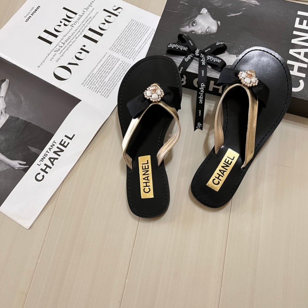 Chanel Shiny Pearl Crystal Cc Heart Thong Sandals Black G39674 X01000 94305