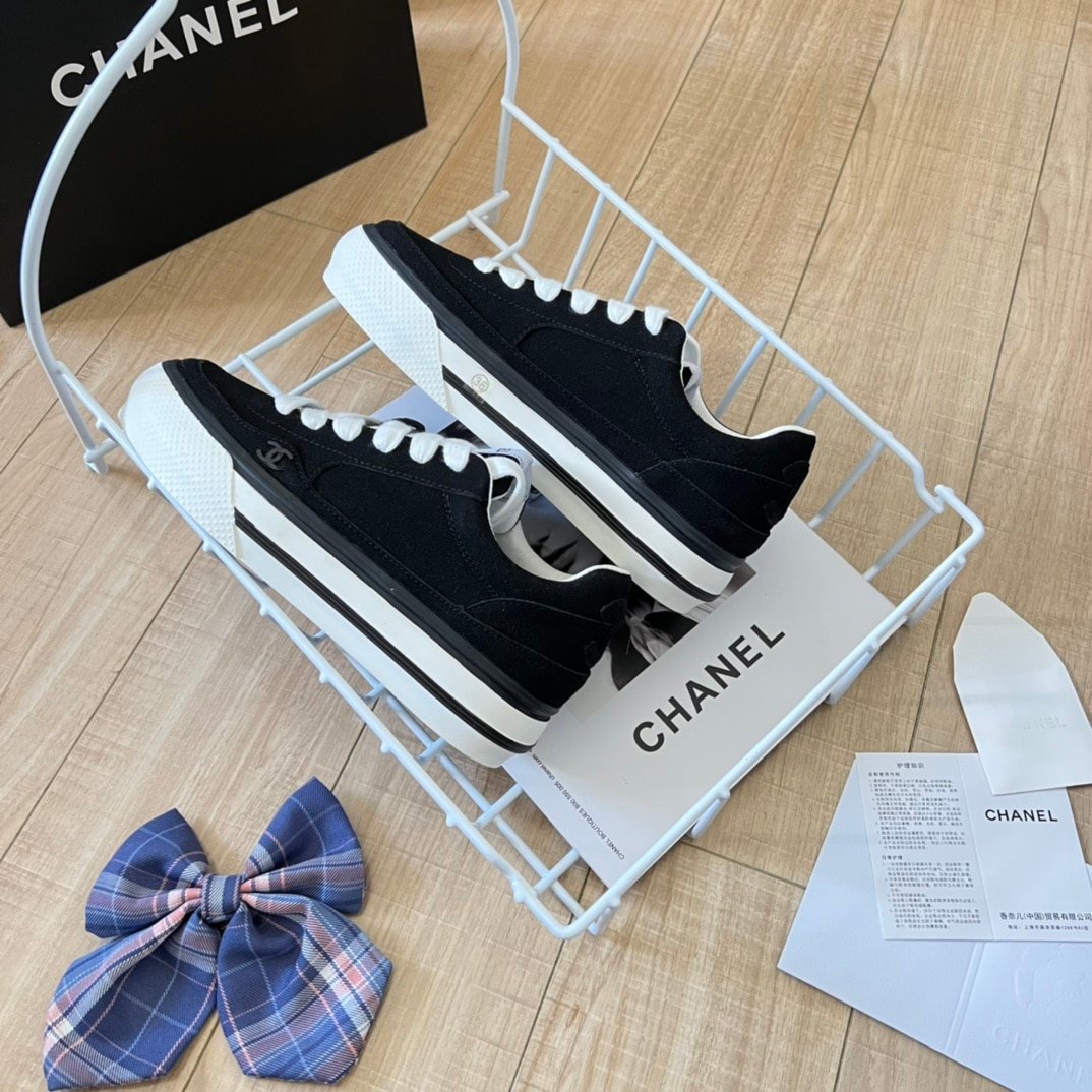 Chanel Suede And Leather Cc Low Top Sneakers White Black