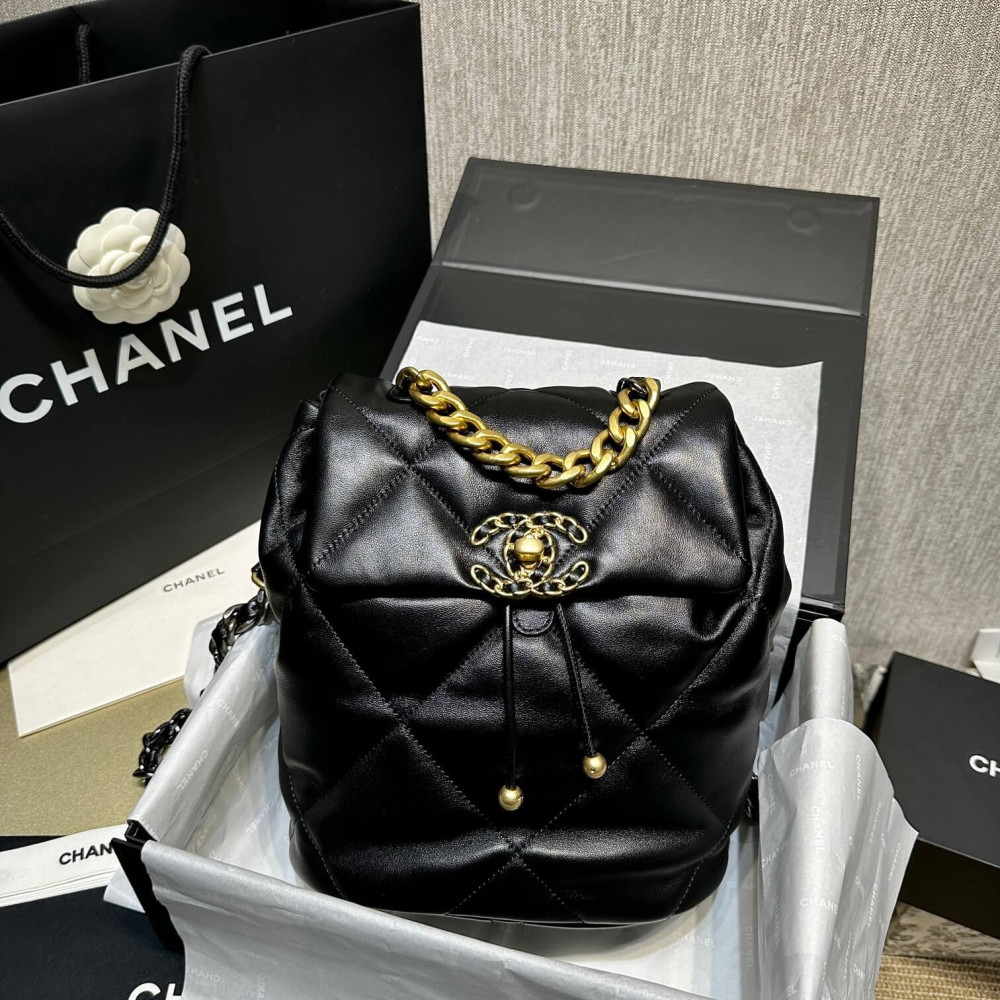 Chanel Black Quilted Lambskin Chanel 19 Backpack Gold and Ruthenium Hardware, 2023