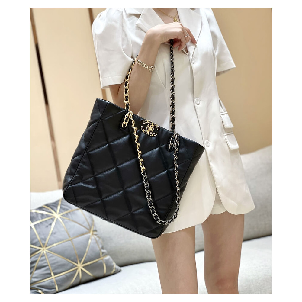 Chanel 19 Black Lambskin Quilted Shopping Bag 37cm