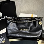Chanel 22 Bag Handbag Black Shiny Calfskin 45cm