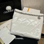 Chanel 22 Small Handbag Shiny Calfskin White Silver