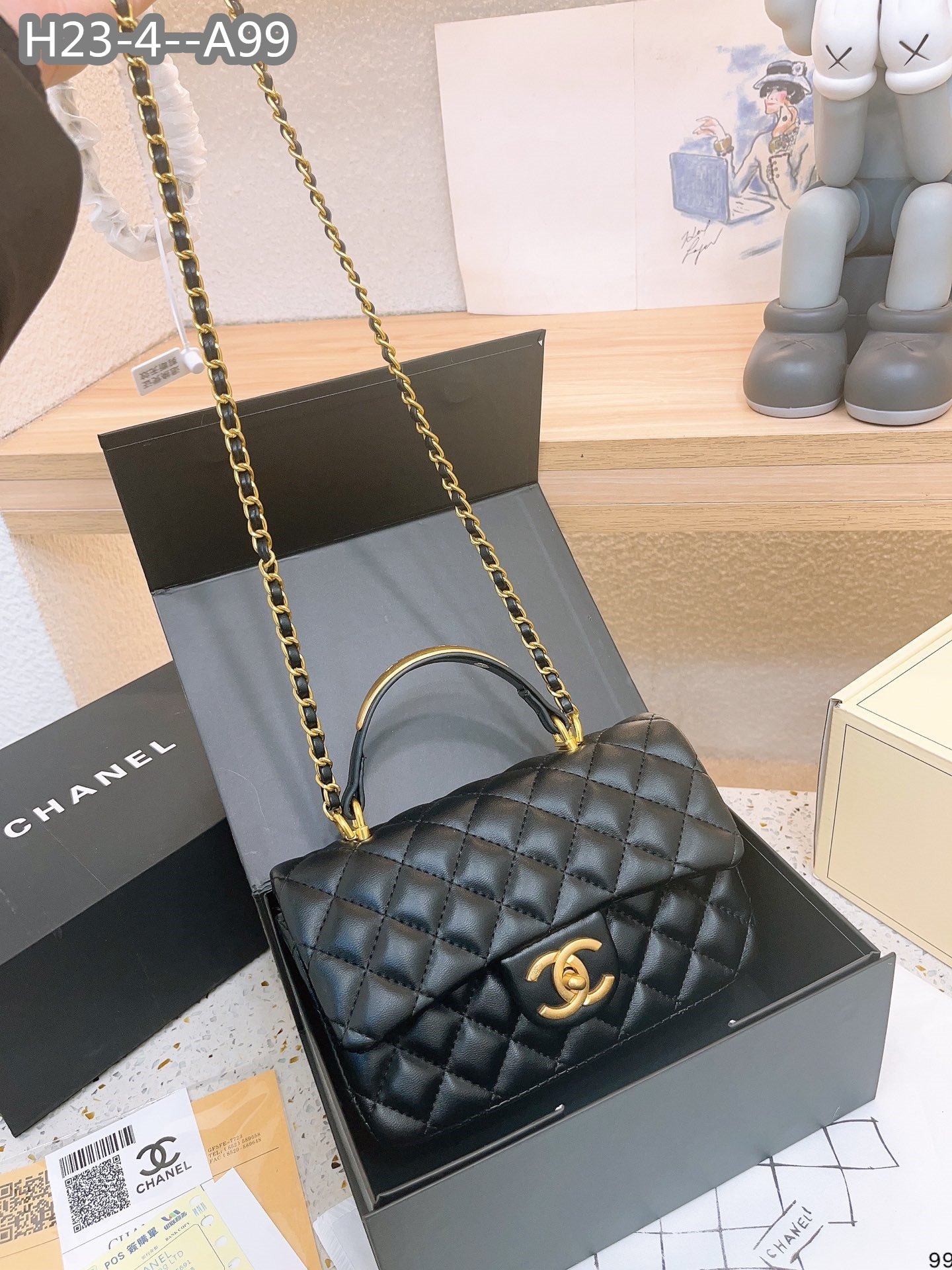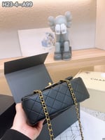 • Chanel 22B Flap Bag With Gold Hardware Top Handle Black 21Cm/8in As2431
