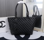 • Chanel Calfskin Quilted Large Cambon Tote Black 41Cm/16in