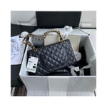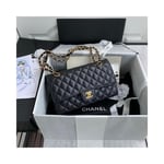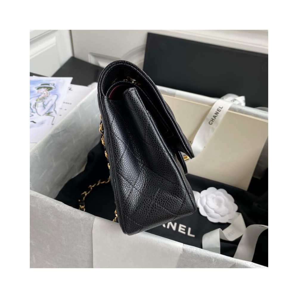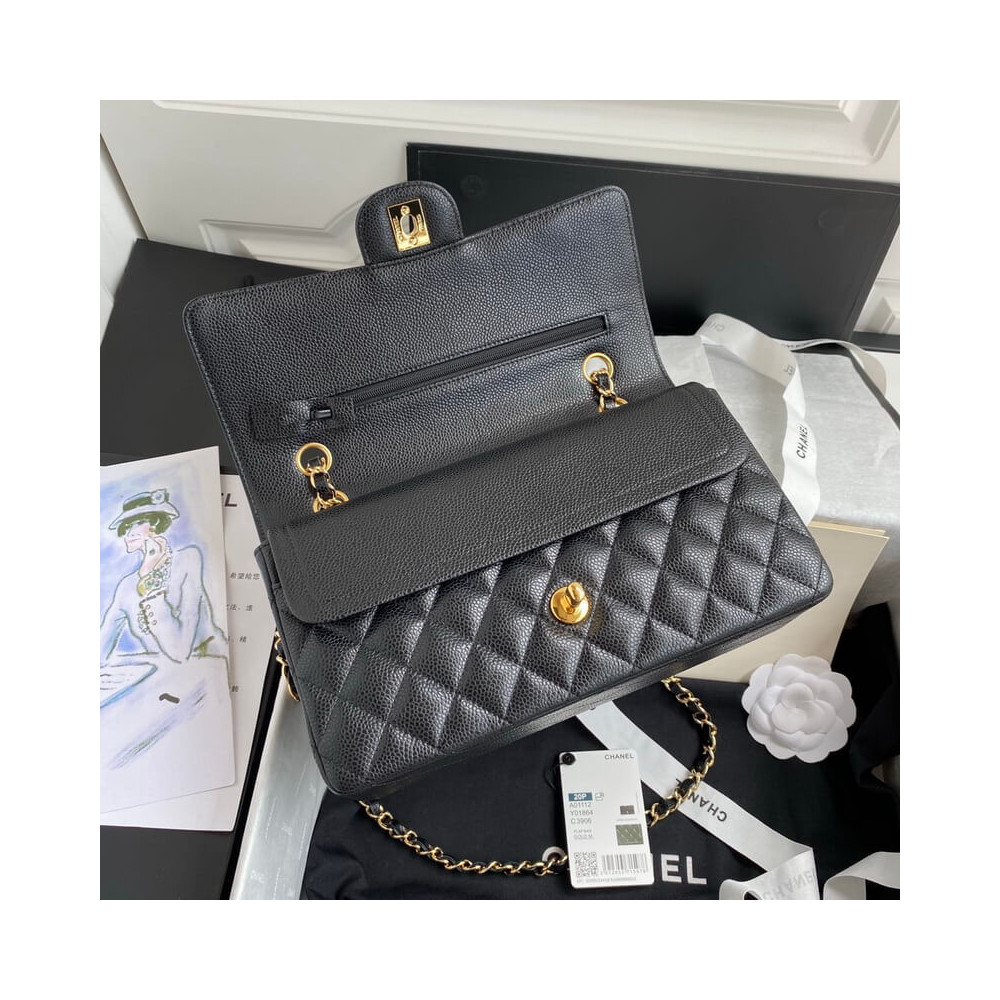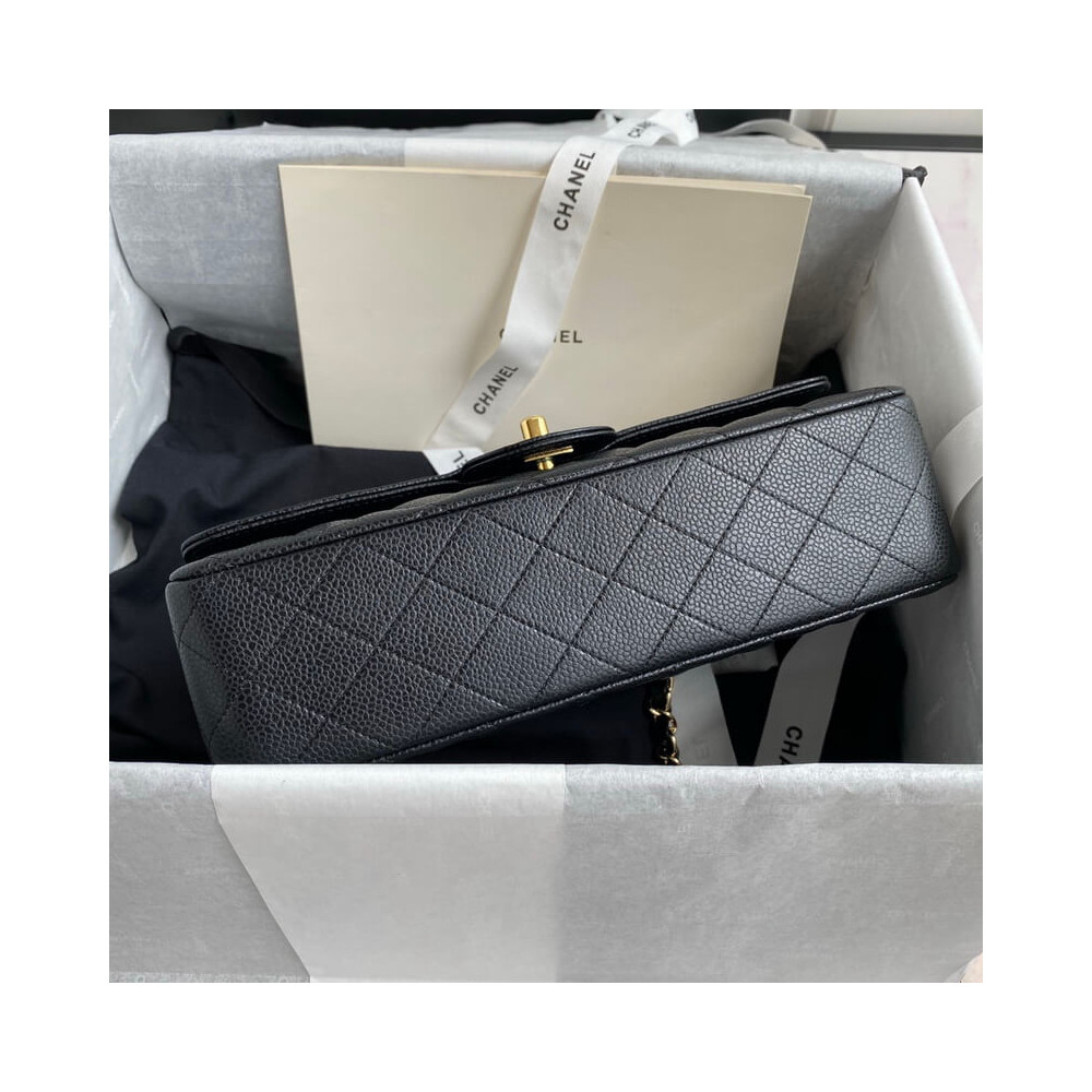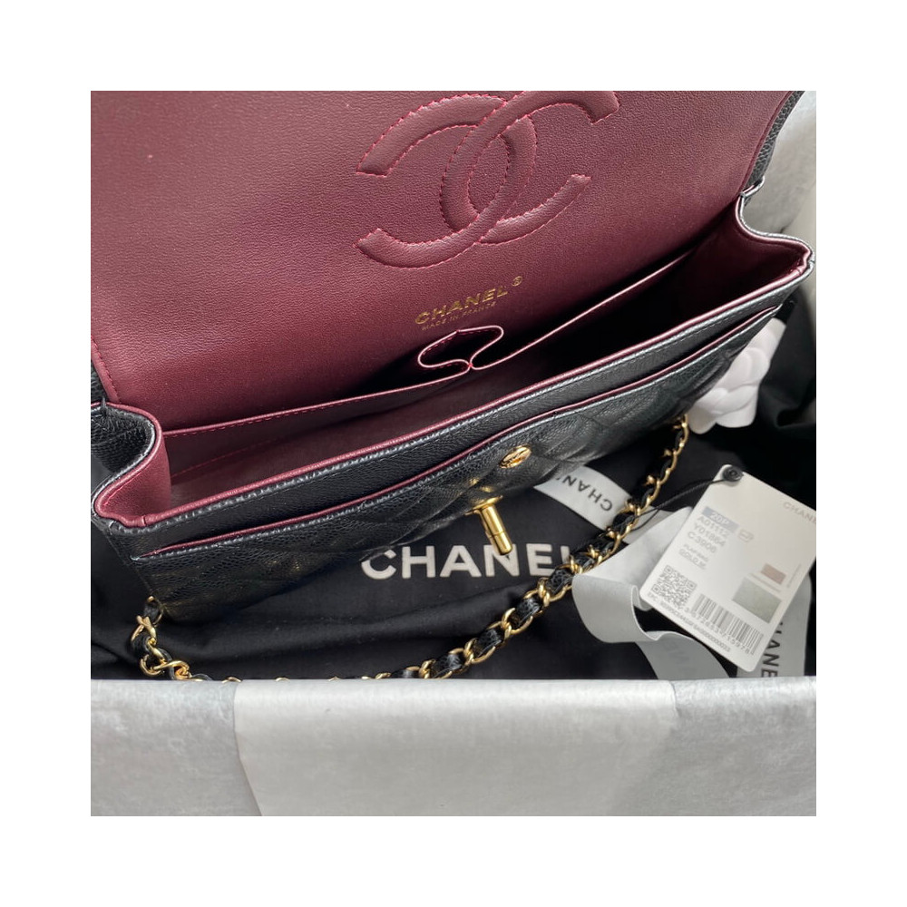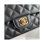 The Medium Classic has a double flap like all Chanel Flap bag sizes (excluding the minis). You will recognize the Medium Chanel Classic bag by the diamond-pattern stitching with eight whole diamonds to a row across the flap. It holds everything from the Small, as well as sunglasses and small toiletries bag.