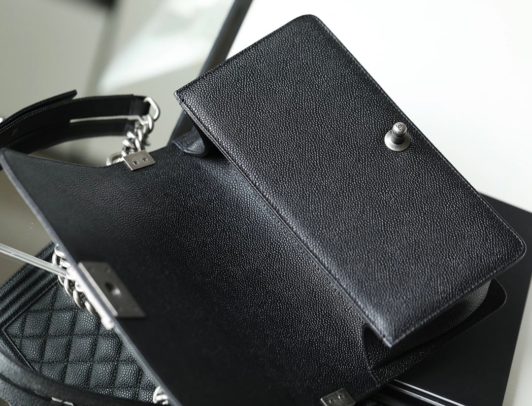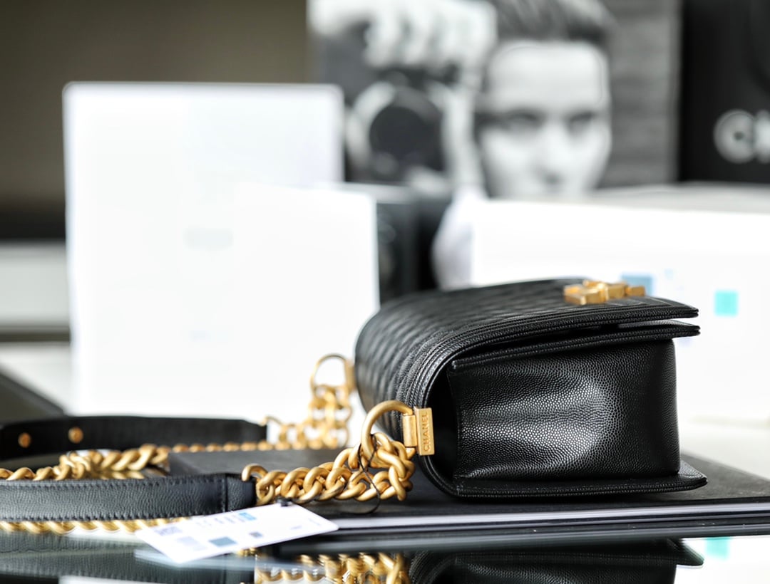 • Chanel Medium Boy Quilted Gold Chain Black 25Cm