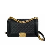 Chanel Medium Boy Quilted Gold Chain Black 25Cm