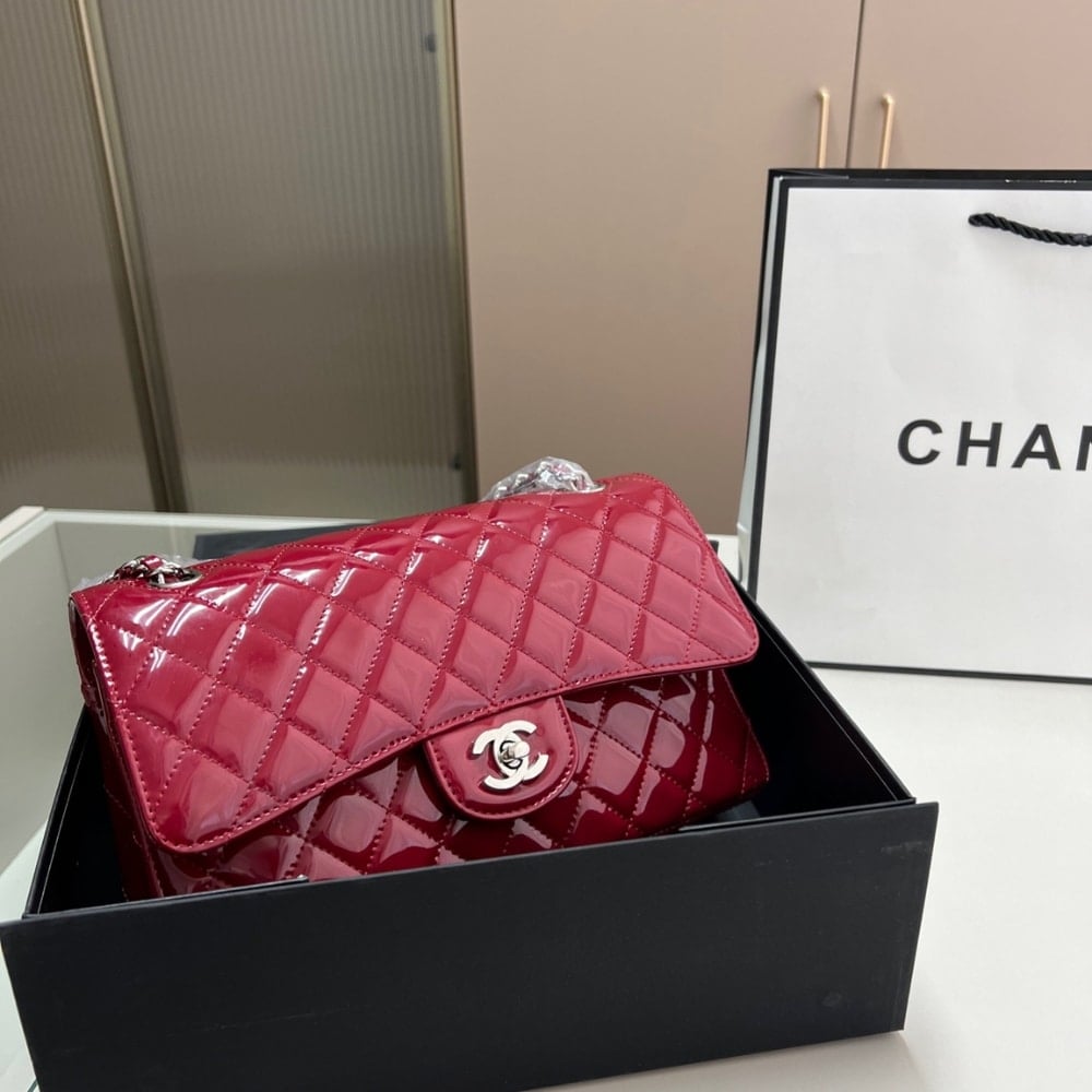 • Chanel Medium Classic Double Flap Bag Patent Leather Red 26Cm/14in