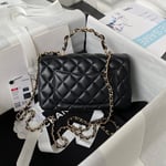 It feels like the Louis Vuitton Pochette Metis Bag, but redesigned with Chanel iconic elements. My favorite mixes are there �C the diamond quilting, the woven chain strap and the shining gold CC logo on the center. The flap and the shape are both stunning. It’s like the Chanel Classic Flap Bag, but with something extra �C and that is the handle on the top. Now you can carry this bag in multiple ways �C on the shoulder, cross body and by hand thanks to the leather handle. All the pieces are just perfect. And I also adore the vintage gold CC logo. Because if you’re going to buy an extra Classic Bag for your wardrobe, you rather have one that is not similar to the Classic Flap Bag. The Classic Flap Bag has the smooth CC logo.