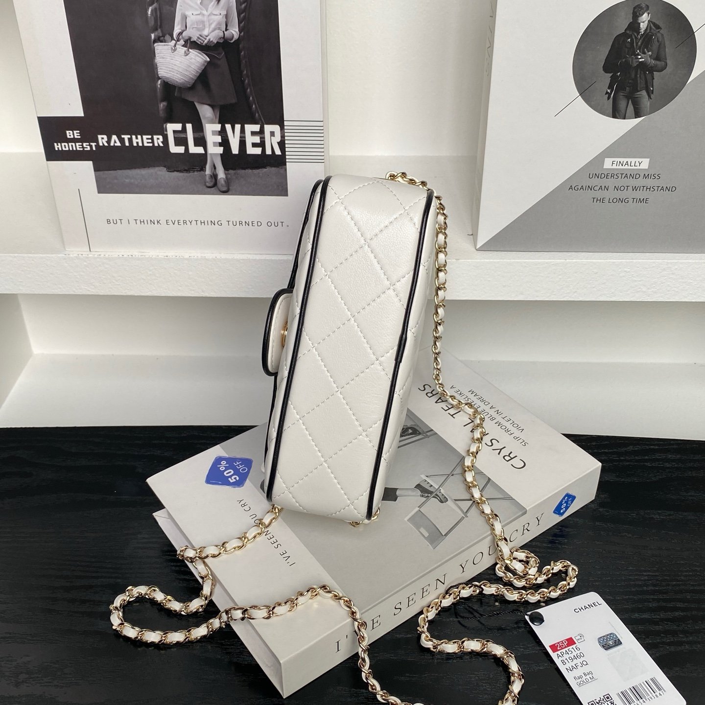 Chanel Small Graphic Frame Flap Bag White 23cm