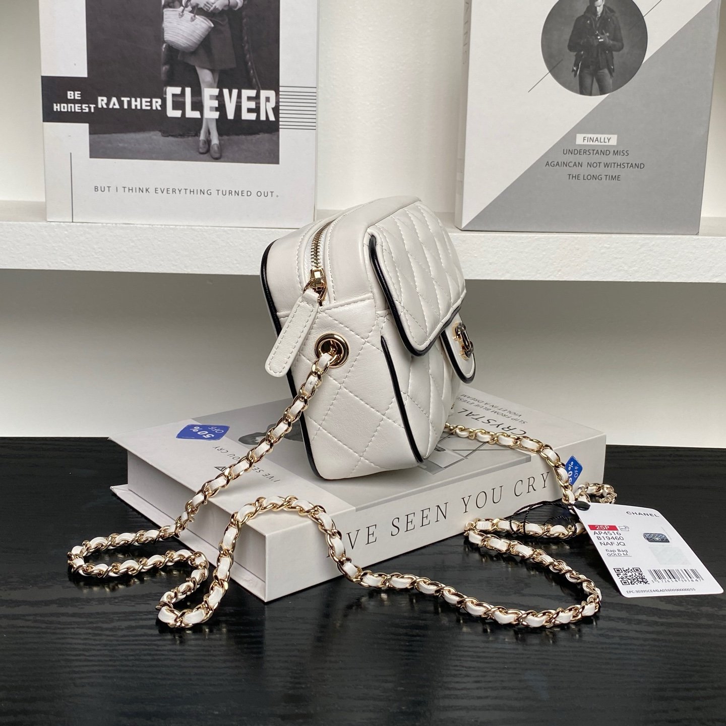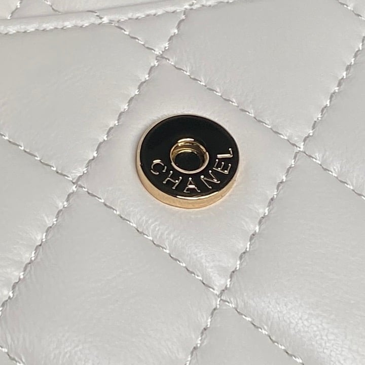 • Chanel Small Graphic Frame Flap Bag White 23cm