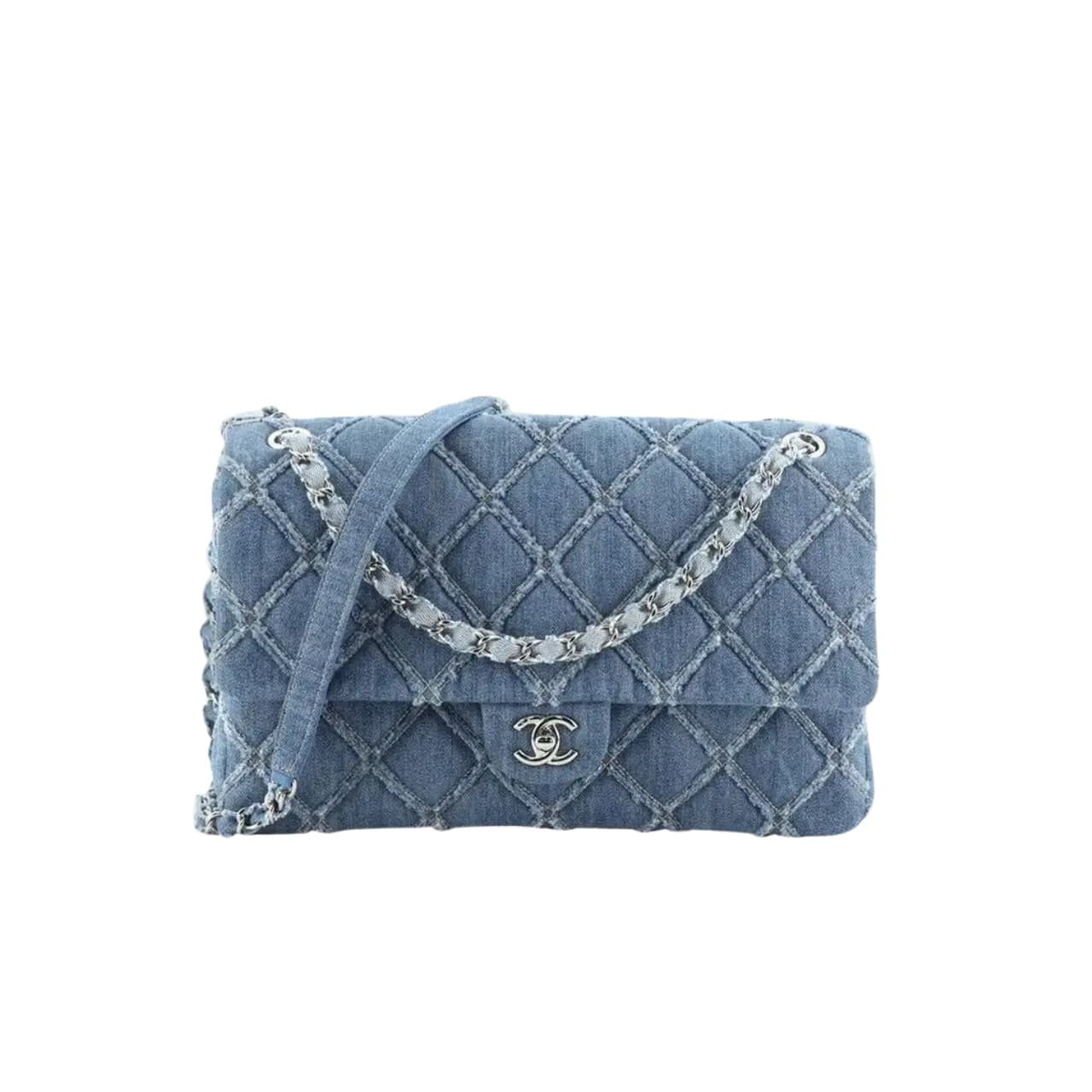 Chanel Cc Chain Flap Quilted Denim Jumbo Blue 25Cm