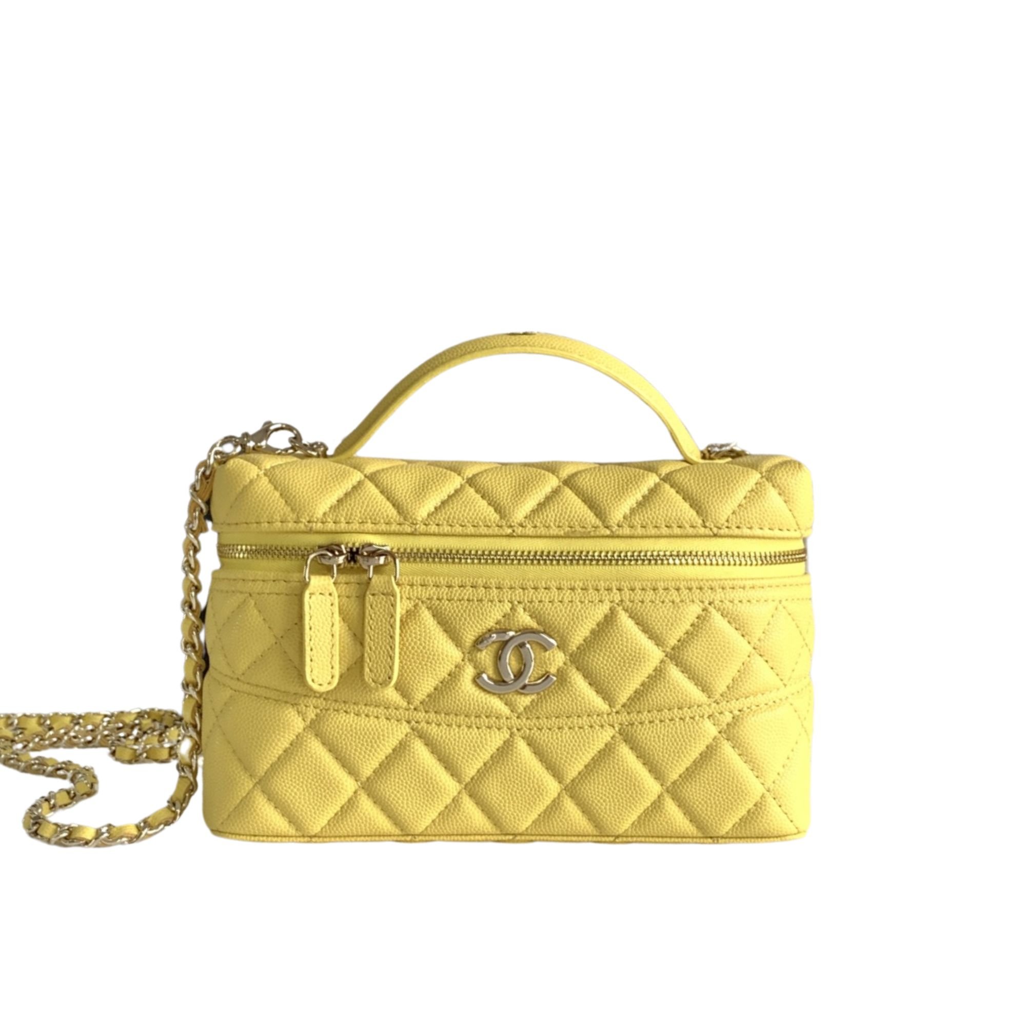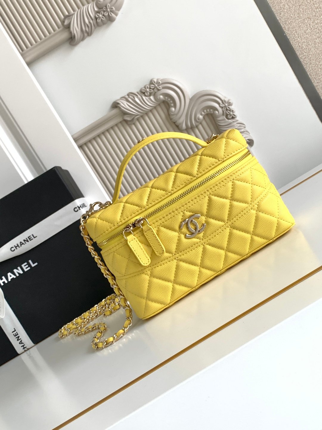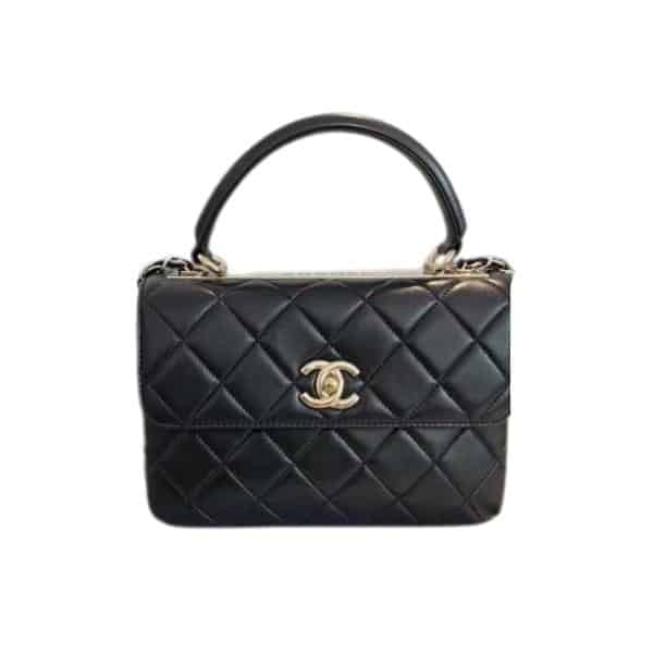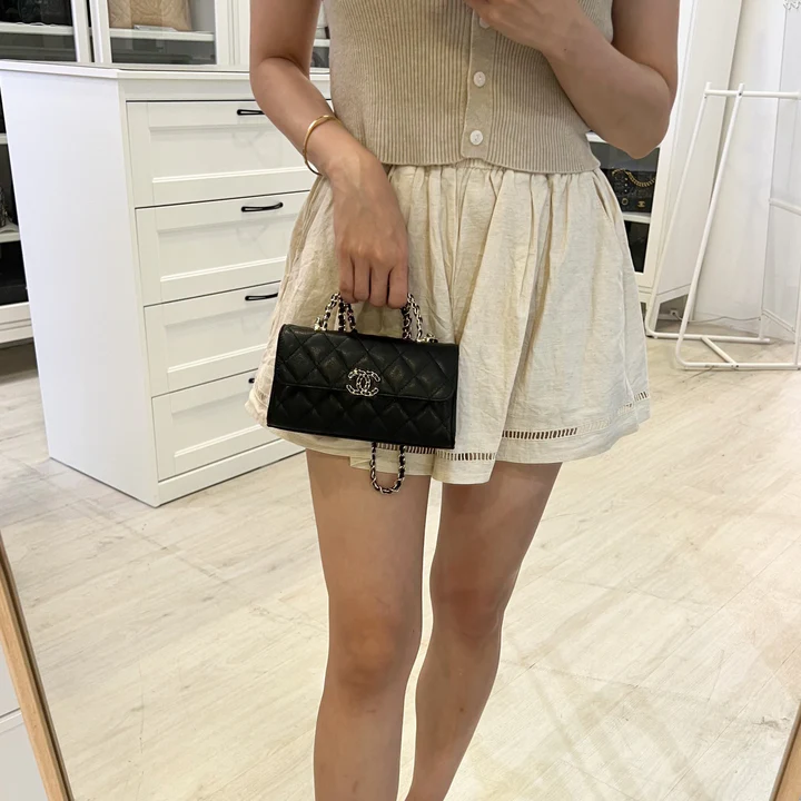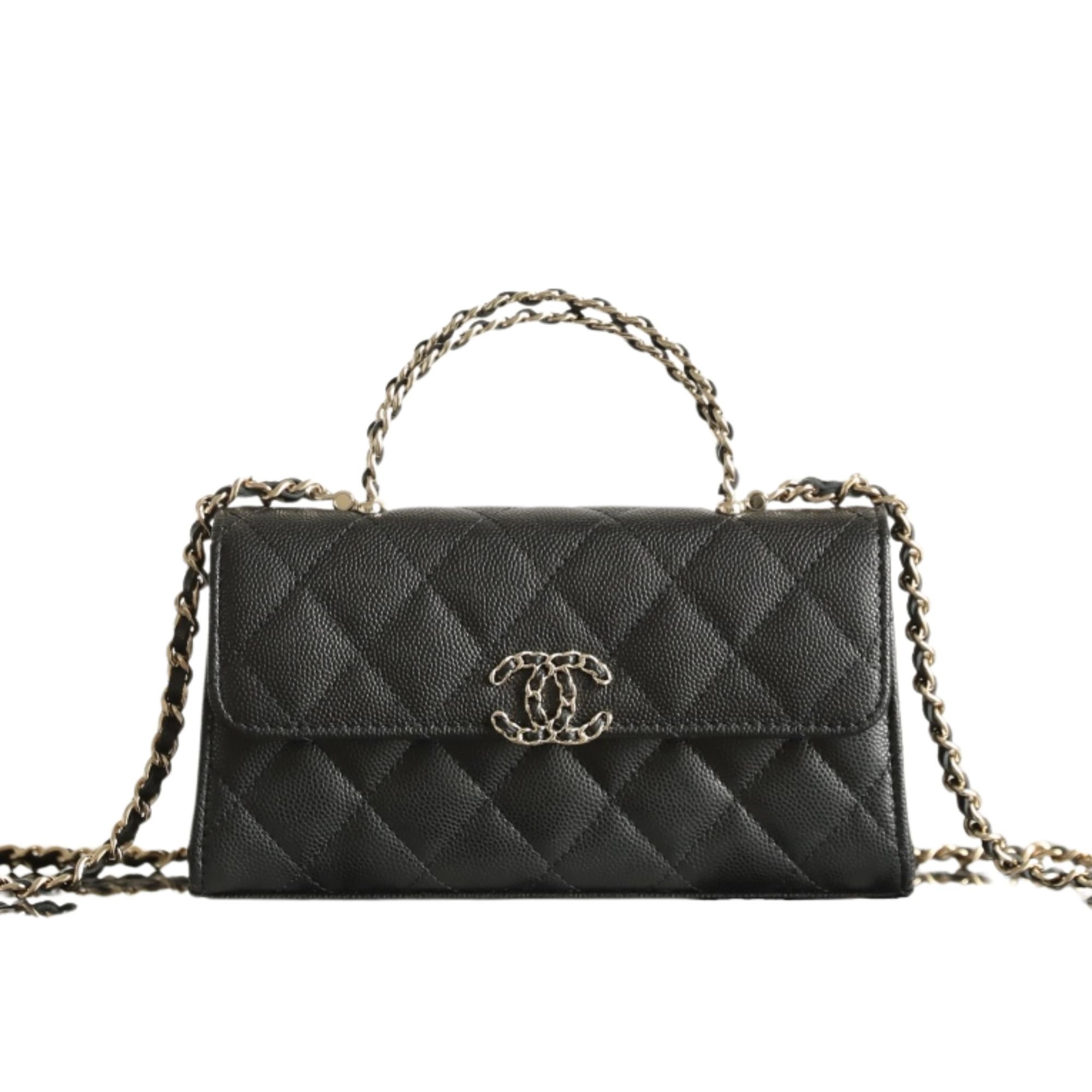 Chanel Caviar Quilted Chain Top Handle Phone Holder With Chain Black 18cm