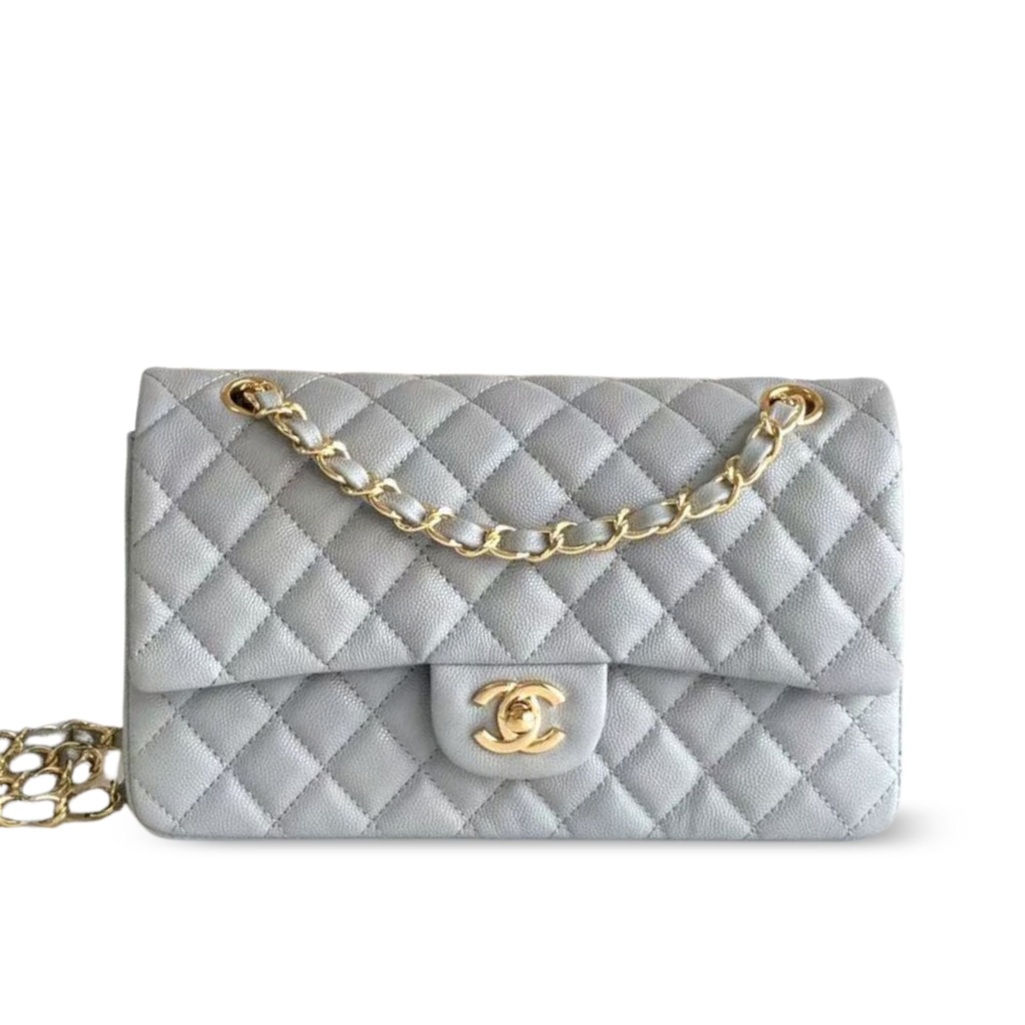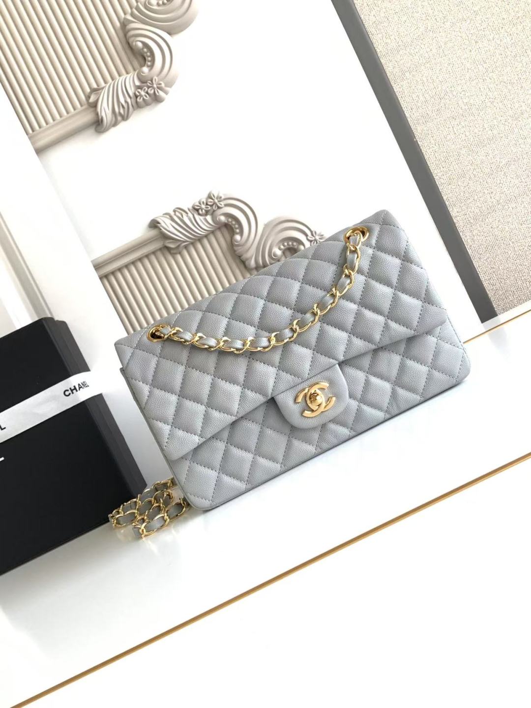 Chanel Classic Flap Bag 25 cm Grey- Gold Tone Hardware A01112