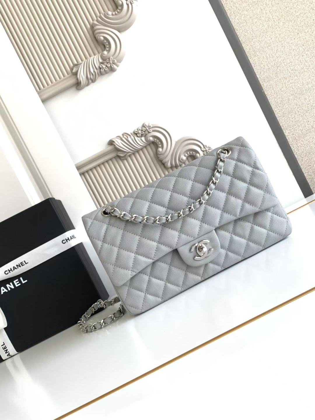 Chanel Classic Flap Bag 25 cm Grey Silver- Tone Hardware A01112