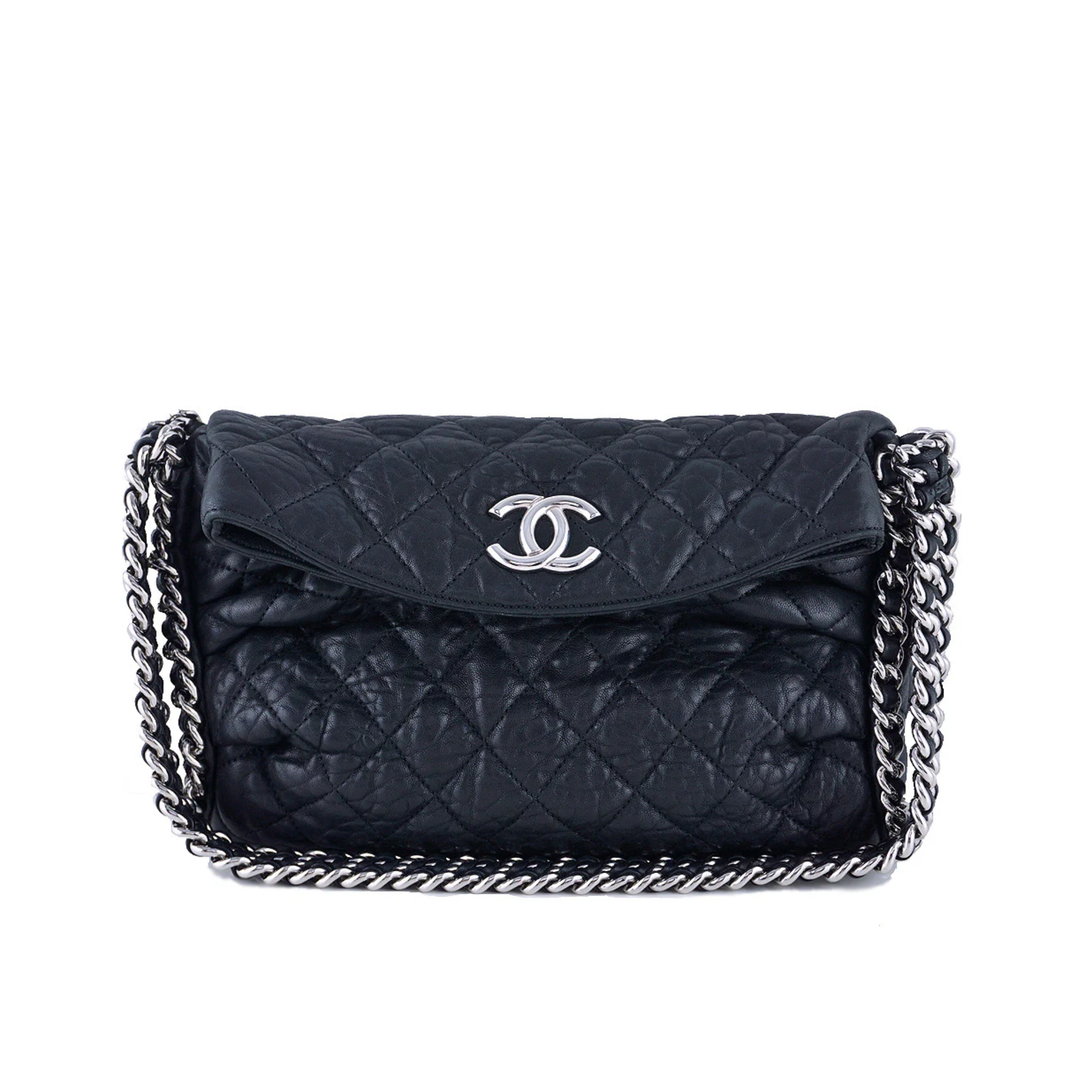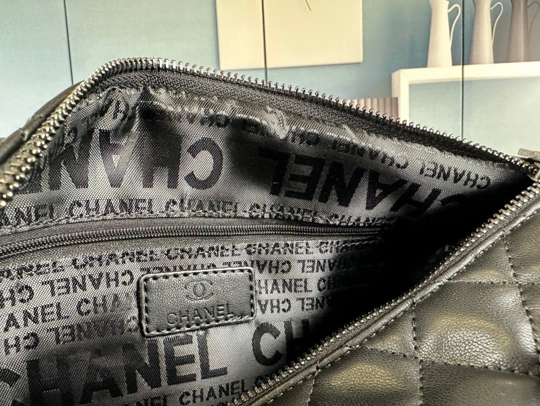 Chanel Black Quilted Washed Lambskin Chain Around Hobo 31cm