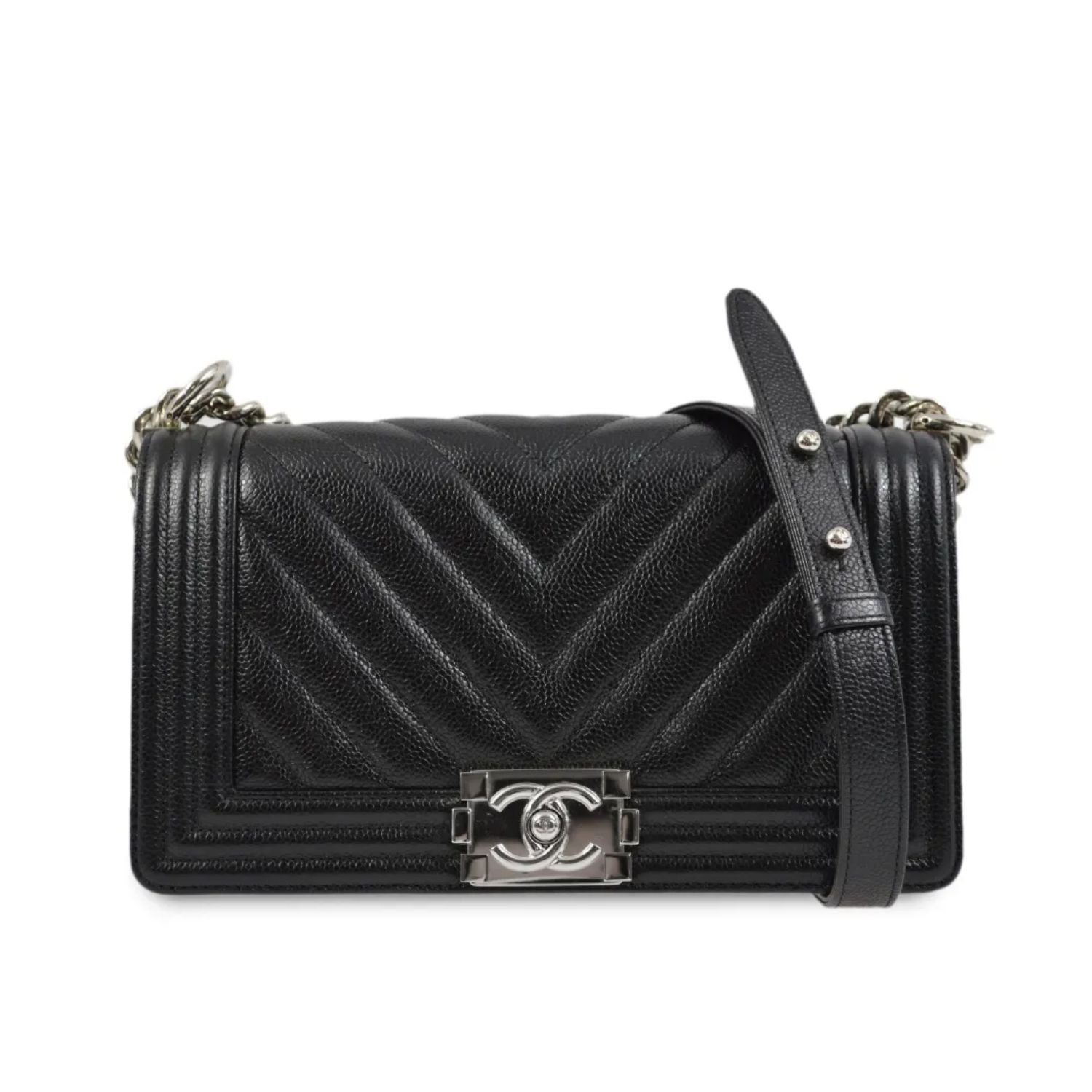 Chanel Boy Caviar Chevron Quilted Flap Bag Black 25Cm/9.8in