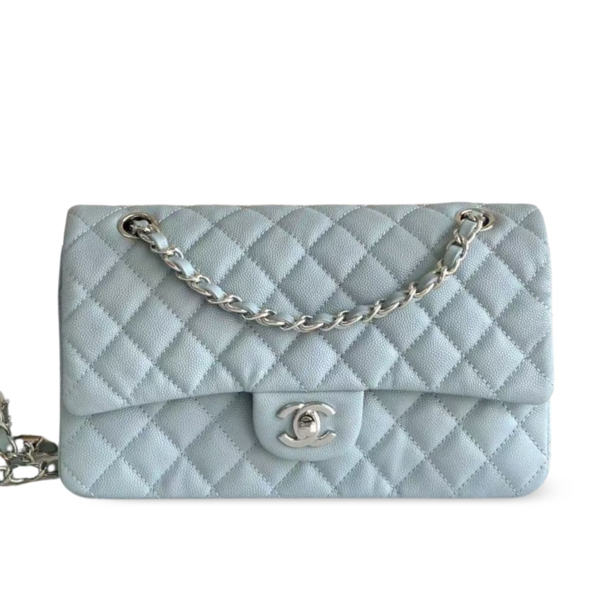 Chanel Classic Flap Bag 25 cm Light Blue Caviar Silver-Tone Hardware A01112