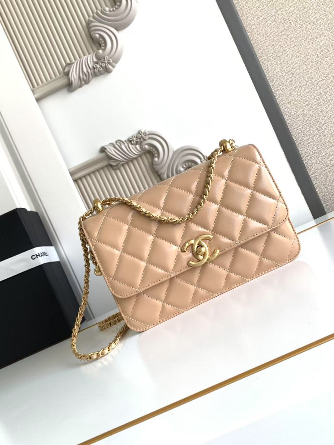 Chanel Calfskin Quilted Perfect Fit Flap Beige 22cm