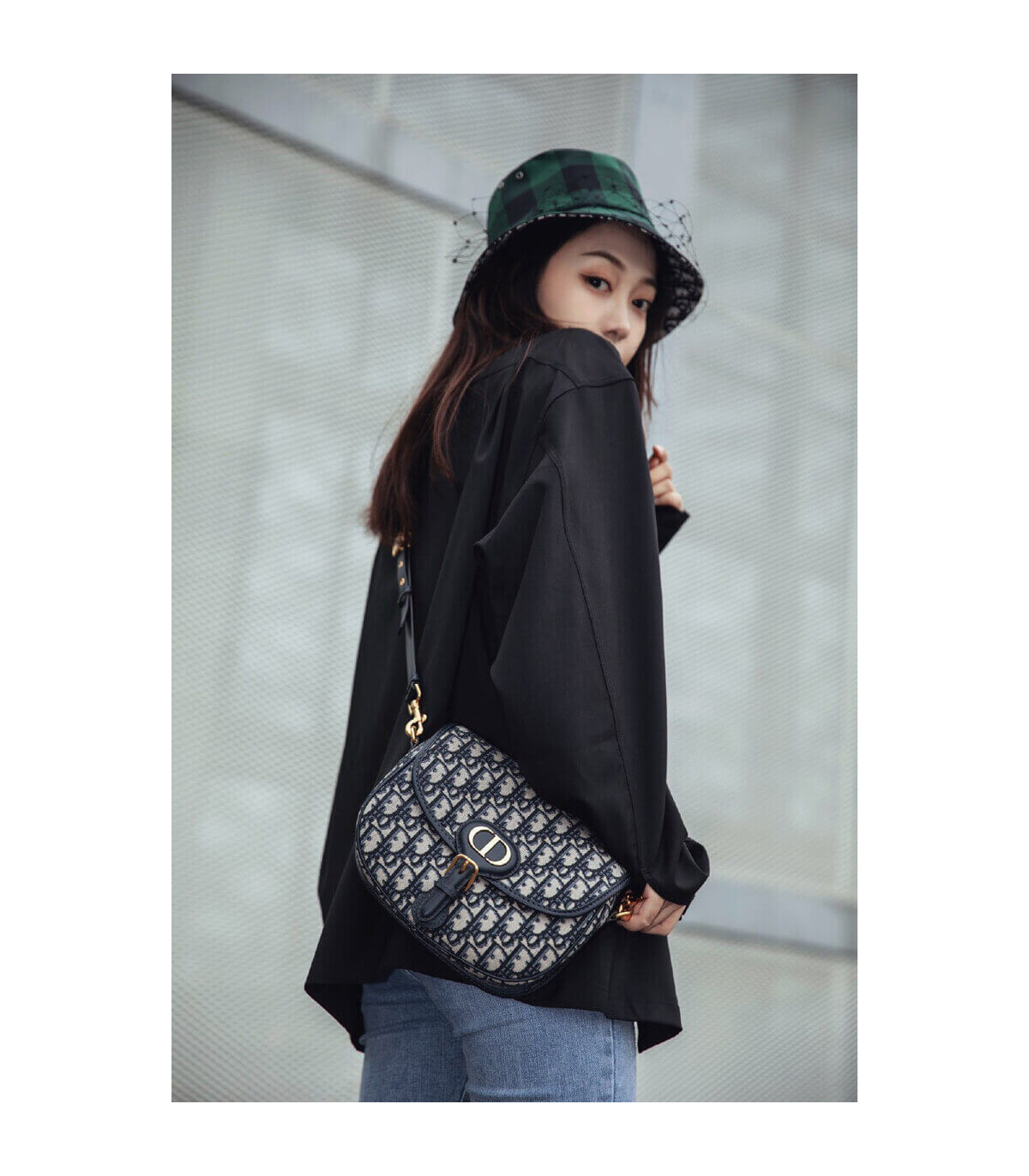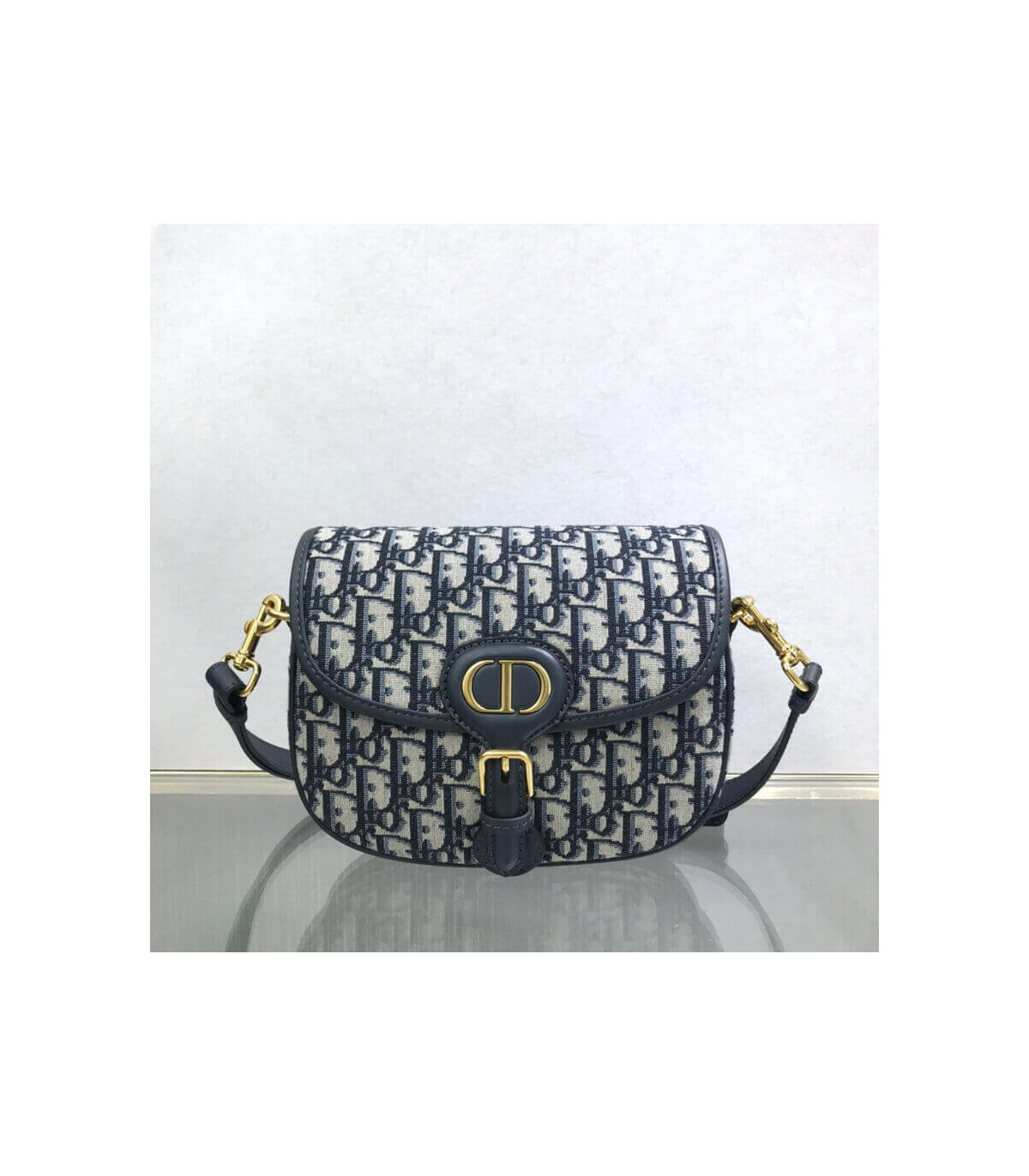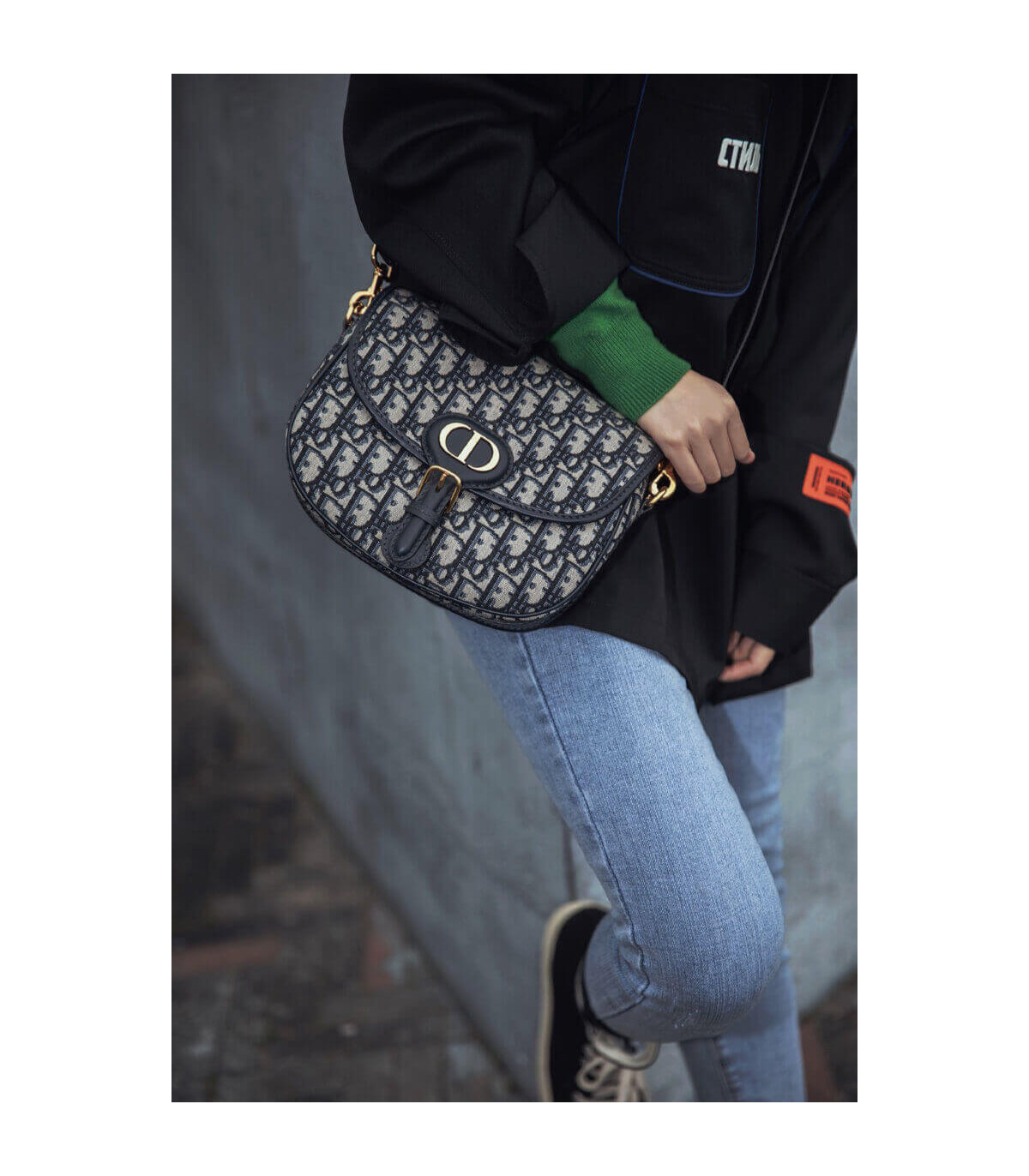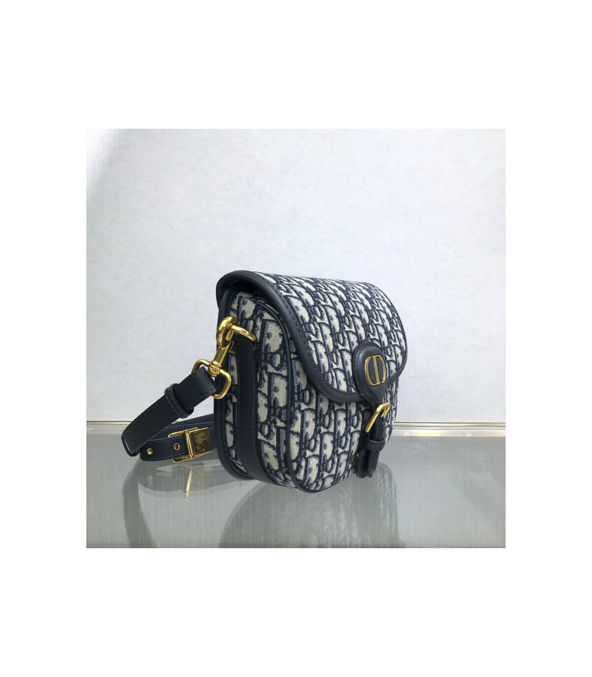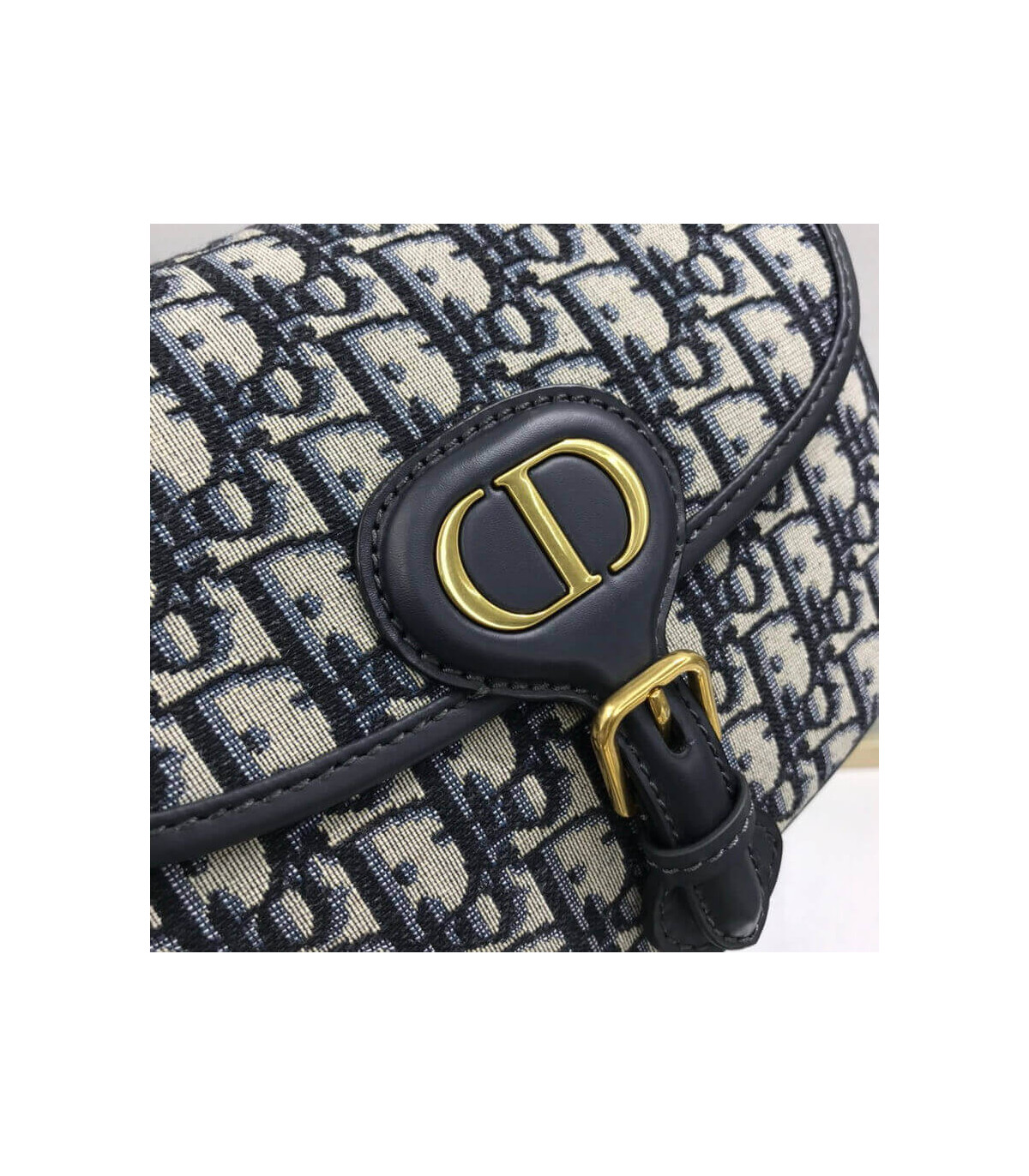 The Dior Bobby is a hobo style showcasing sophisticated lines and harmonious proportions. This medium model is crafted from blue Dior Oblique jacquard canvas and enhanced by antique gold-finish hardware. Its removable and adjustable shoulder strap has a military-inspired buckle, and allows it to be carried on the shoulder or crossbody, as well as by hand.