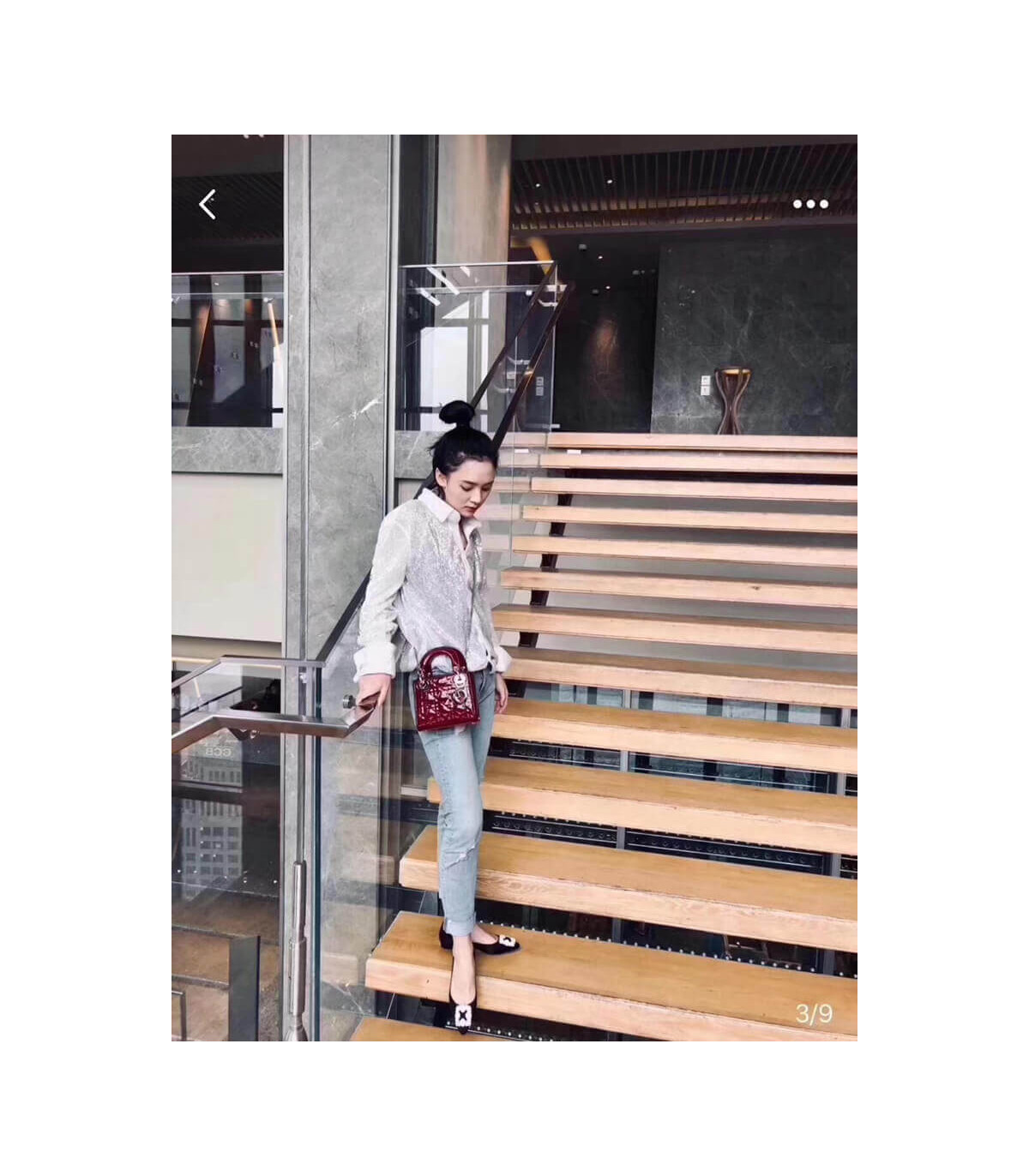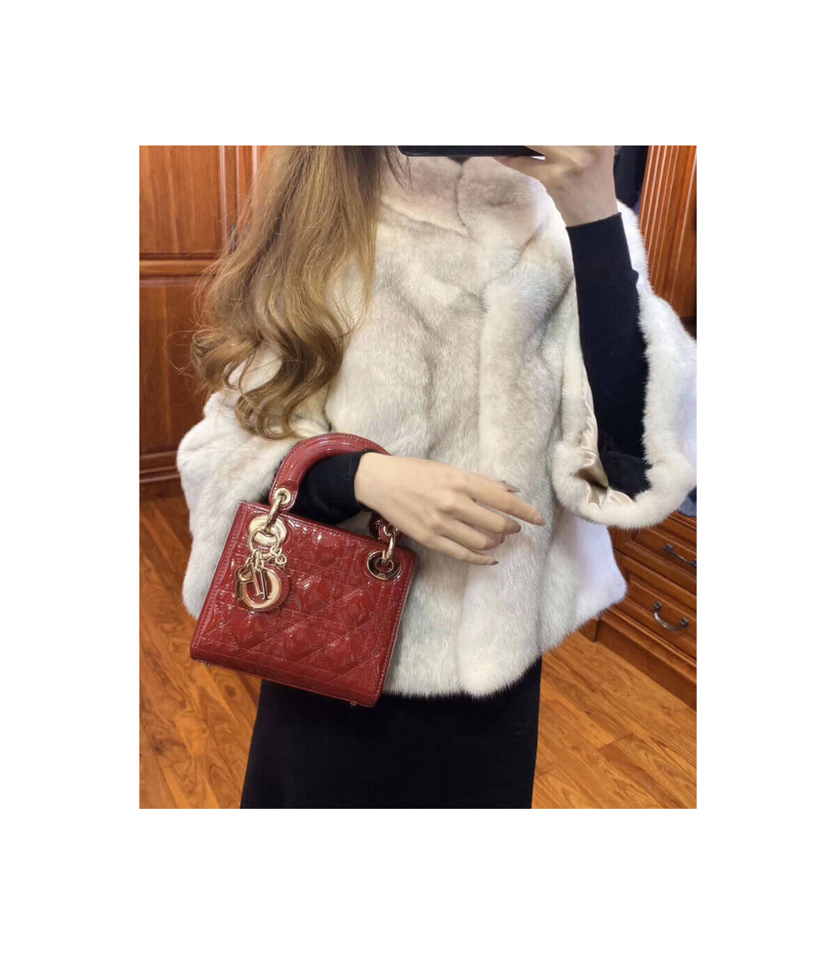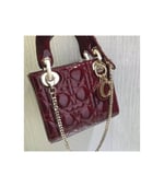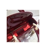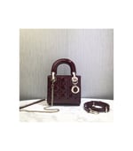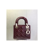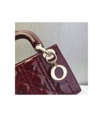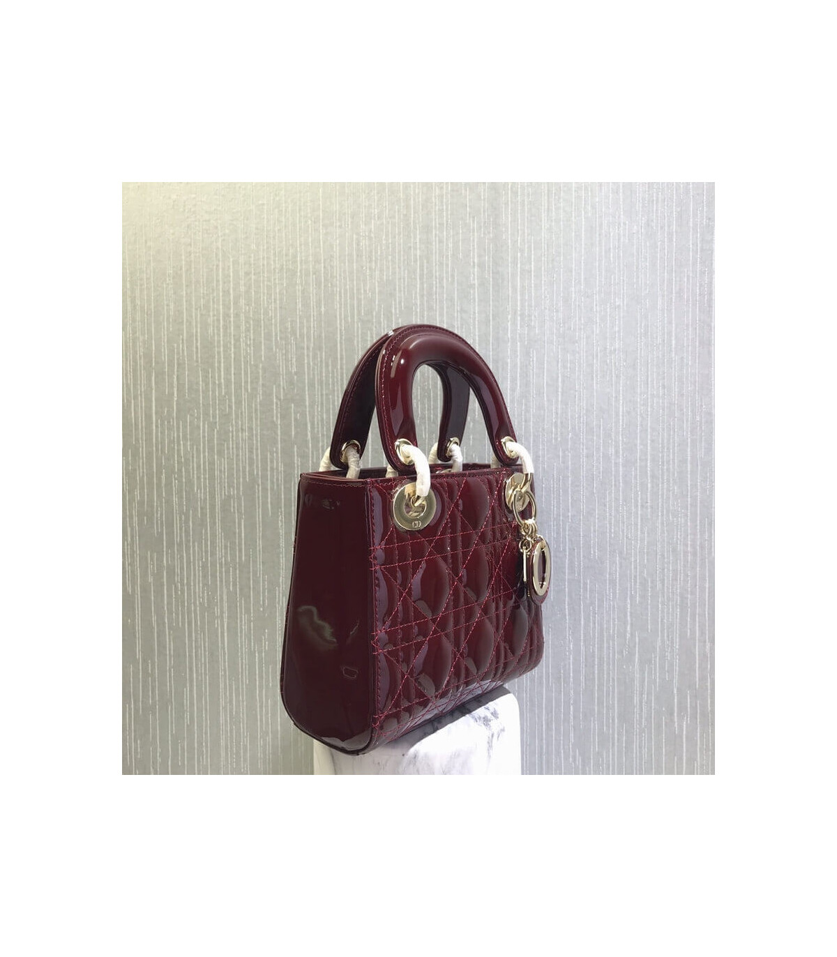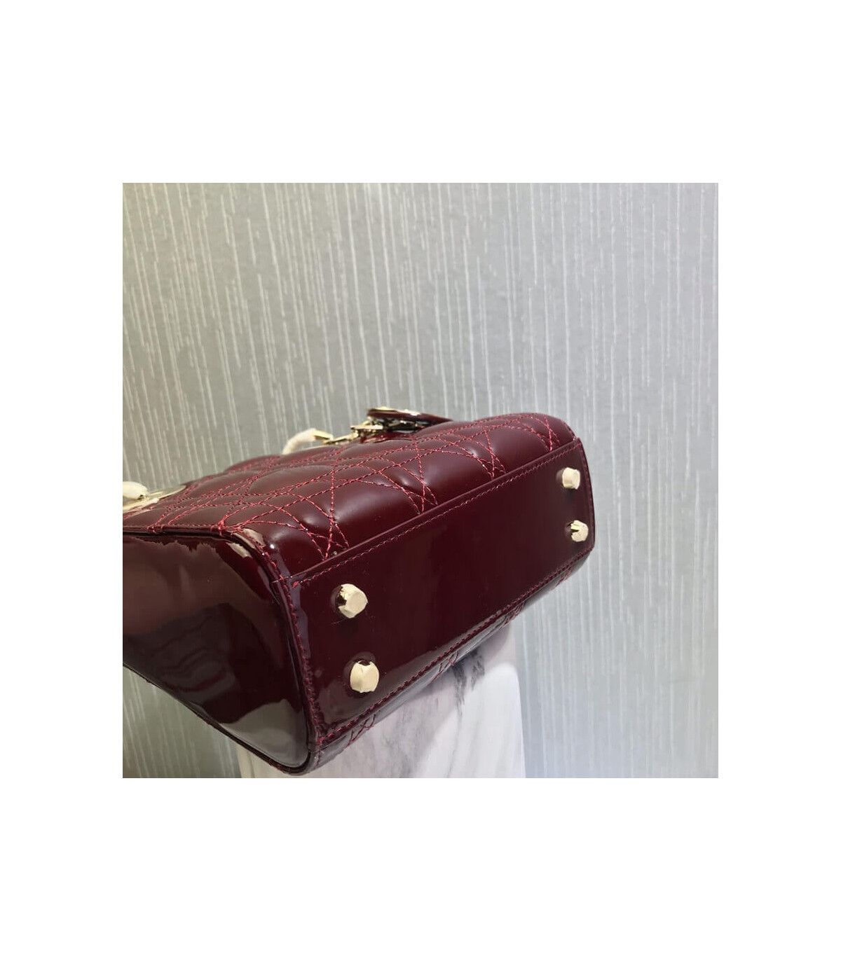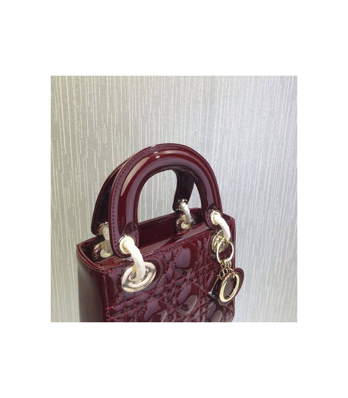 • Christian Dior Mini Lady Dior Bag Burgundy Patent Cannage Calfskin