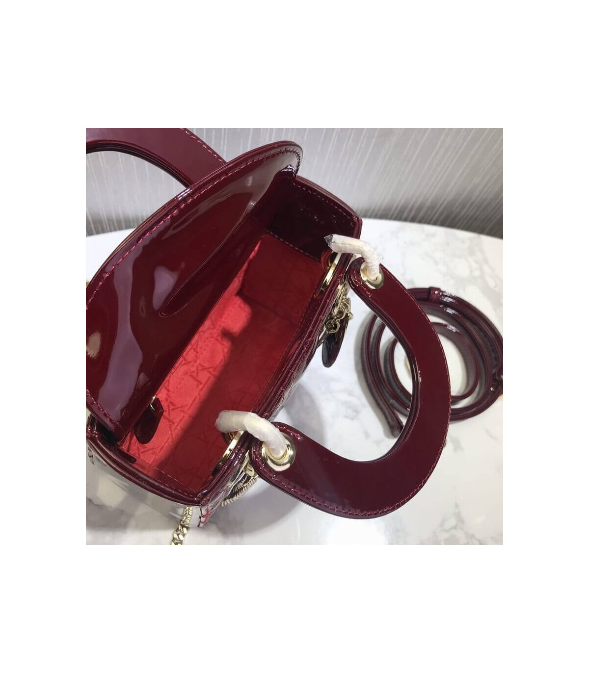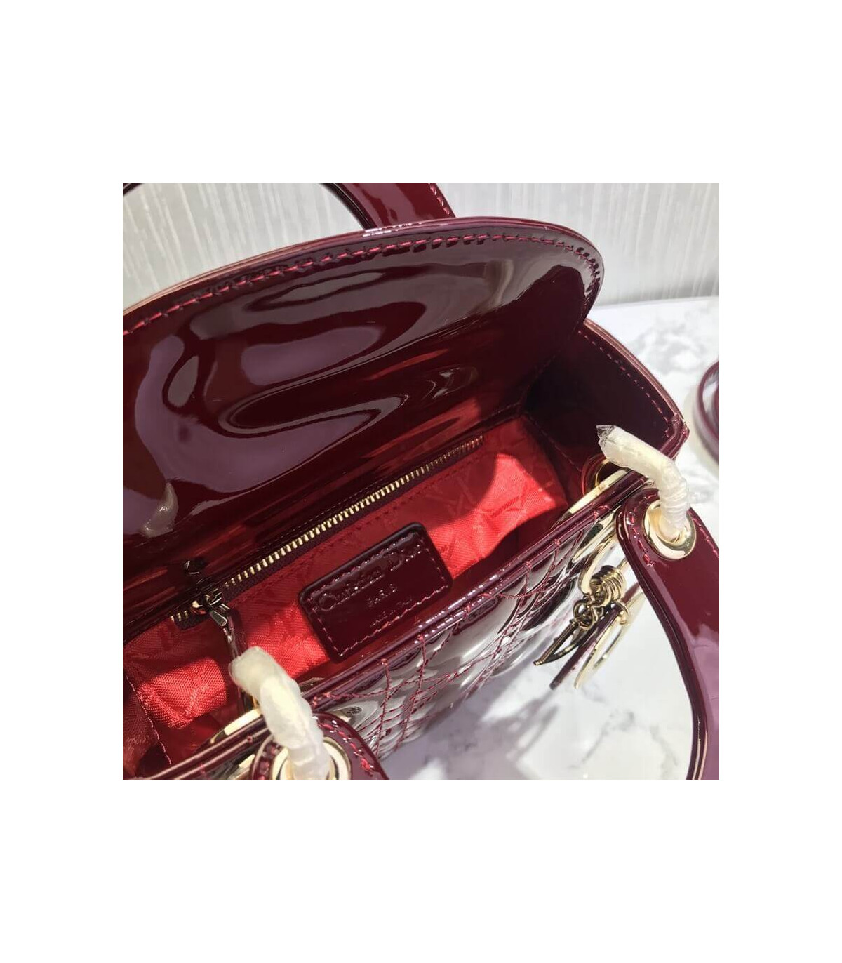 Christian Dior Mini Lady Dior Bag Burgundy Patent Cannage Calfskin