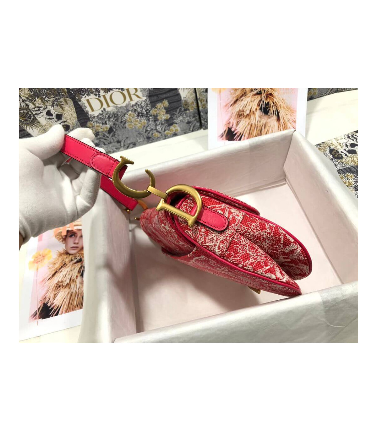 Christian Dior Saddle Bag Raspberry Toile de Jouy Reverse Jacquard