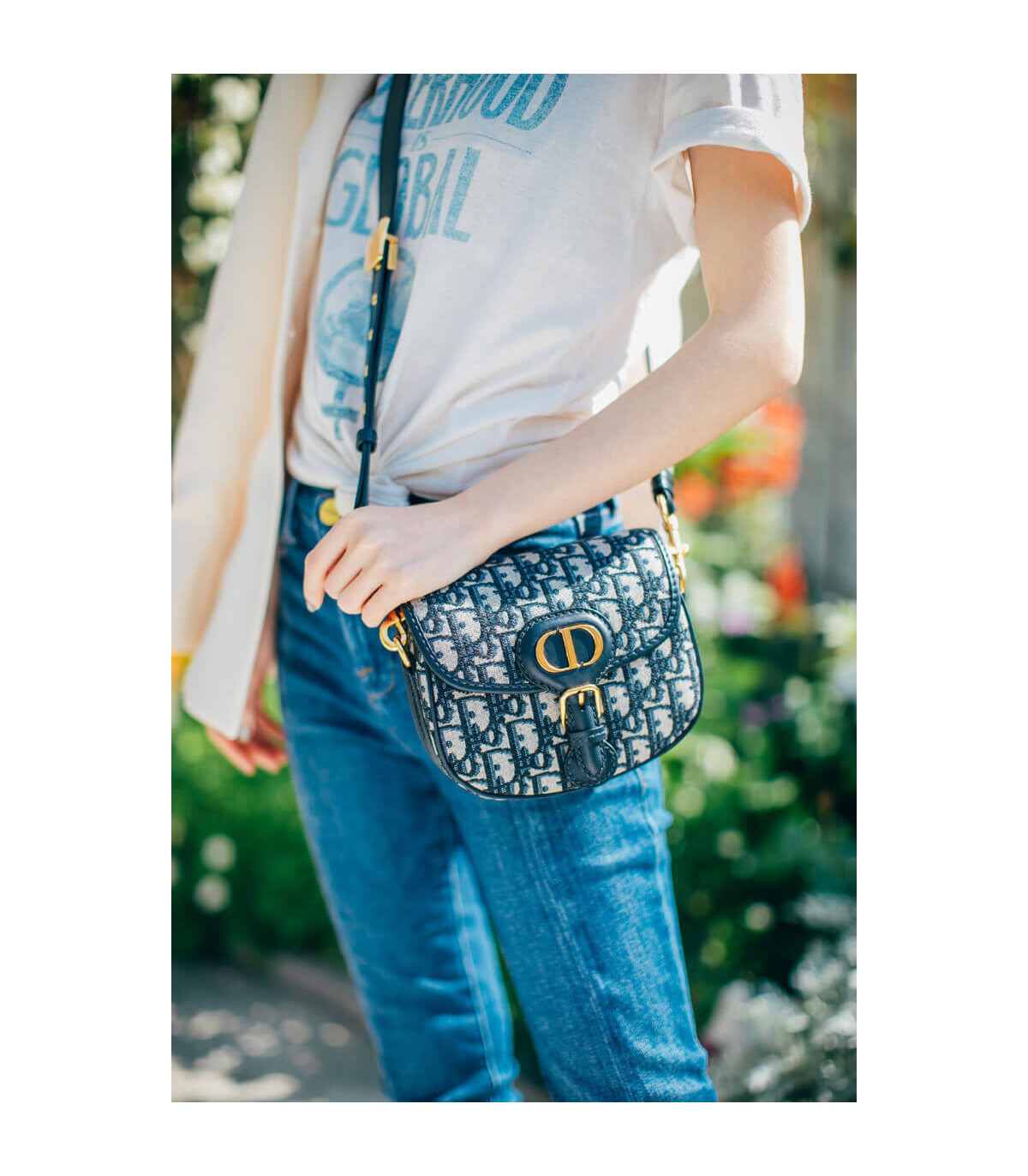 The Dior Bobby is a hobo style showcasing sophisticated lines and harmonious proportions. This medium model is crafted from blue?Dior Oblique jacquard canvas and enhanced by antique gold-finish hardware. Its removable and adjustable shoulder strap has a military-inspired buckle, and allows it to be carried on the shoulder or crossbody, as well as by hand.