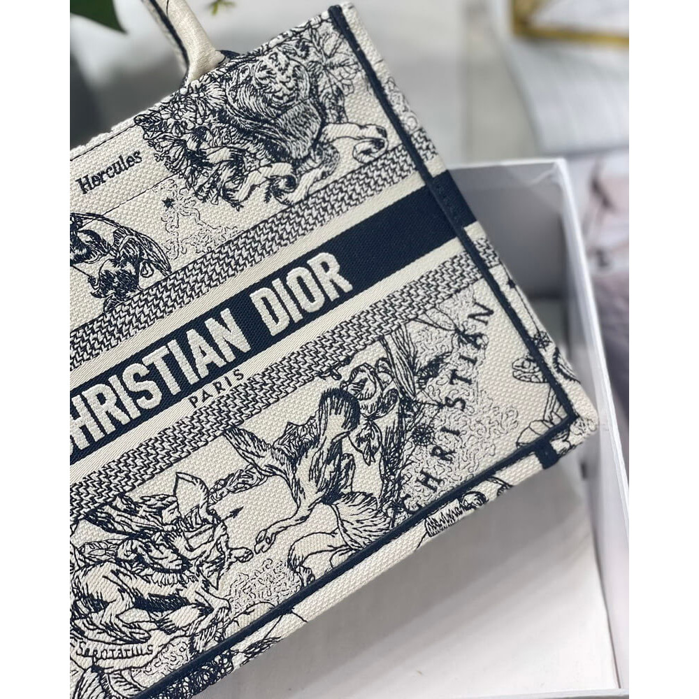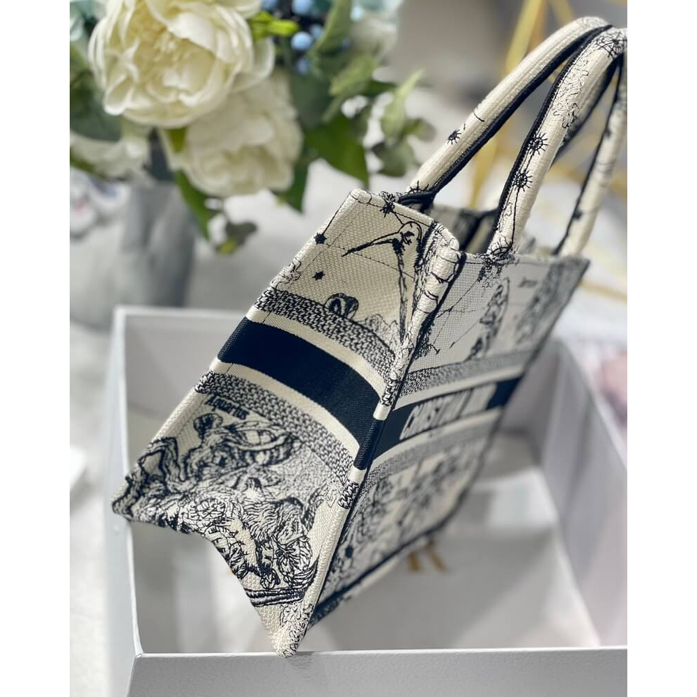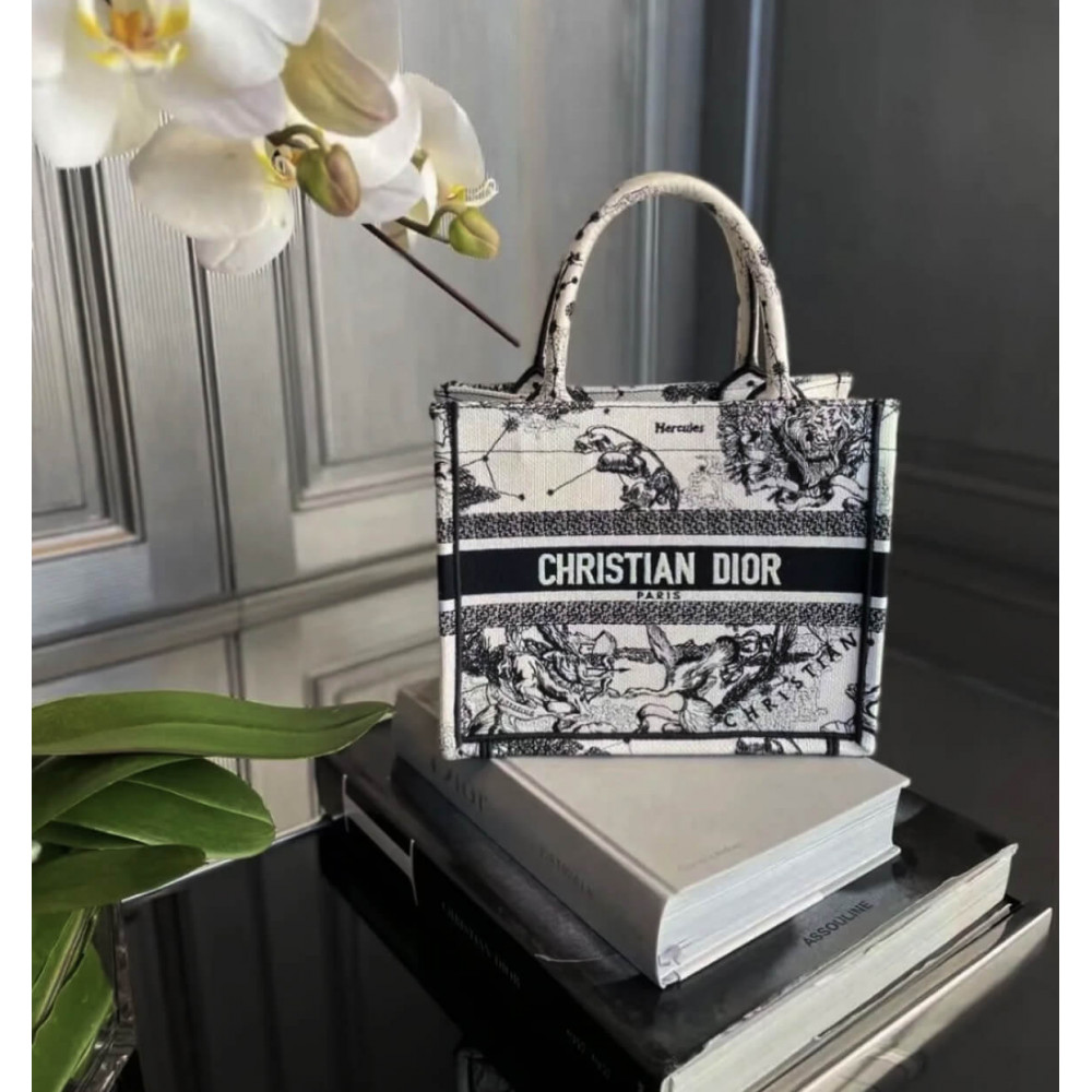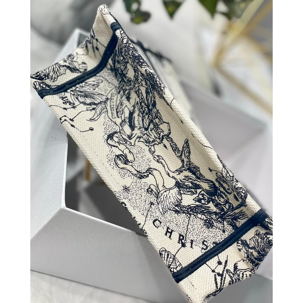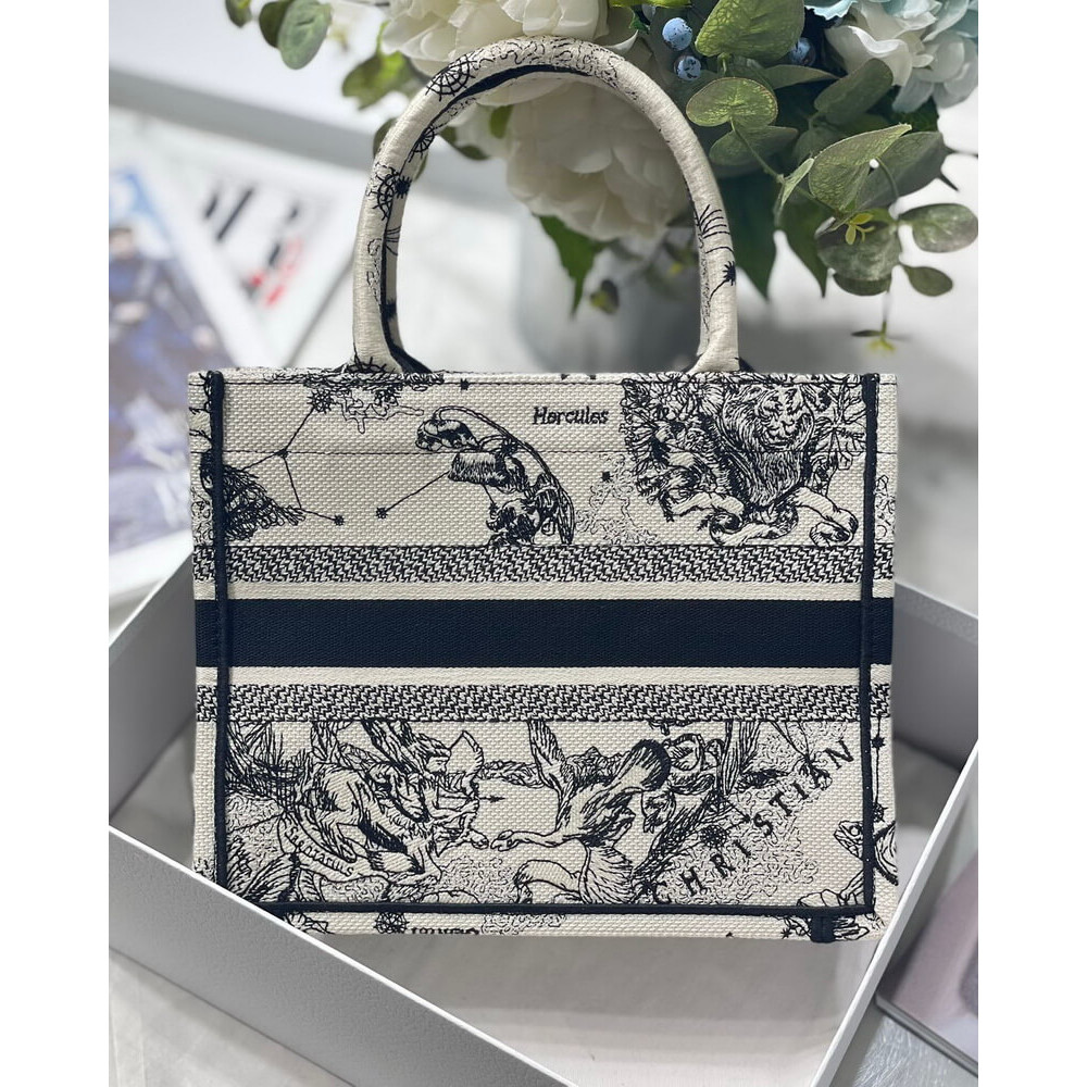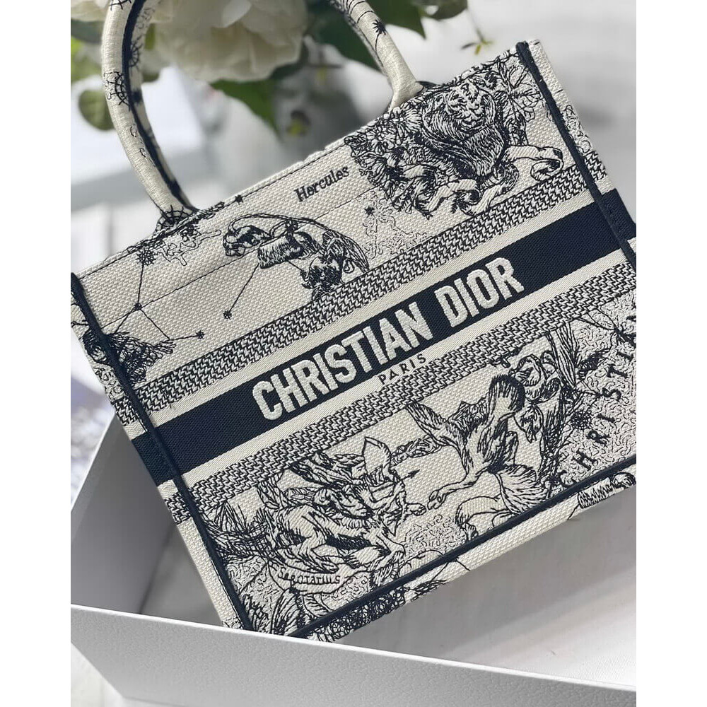 Christian Dior Small Book Tote Bag 26cm Latte Toile De Jouy Zodiac Embroidery Beige