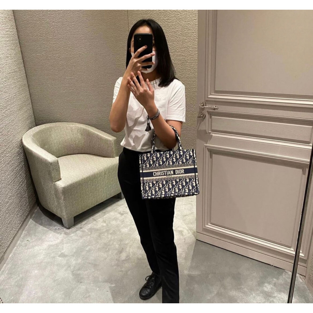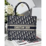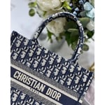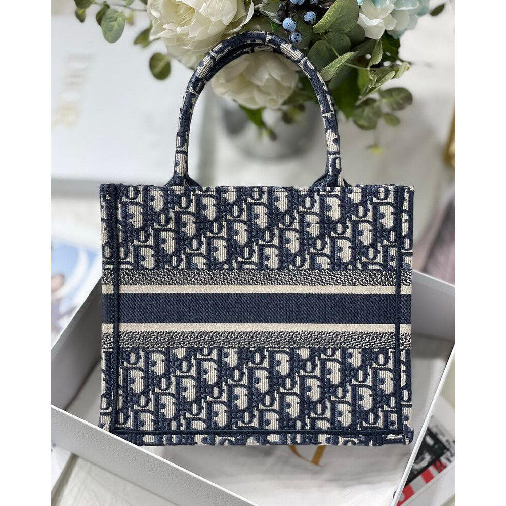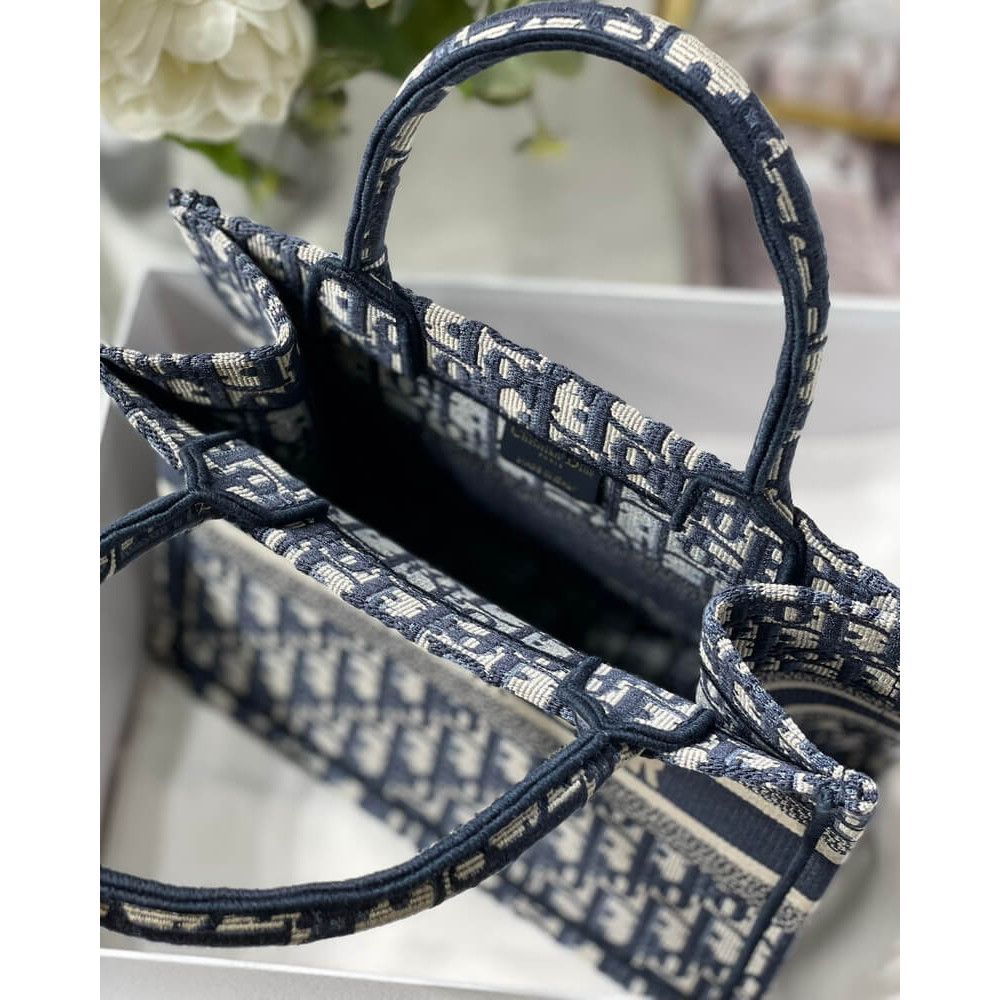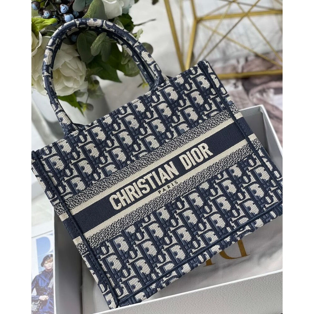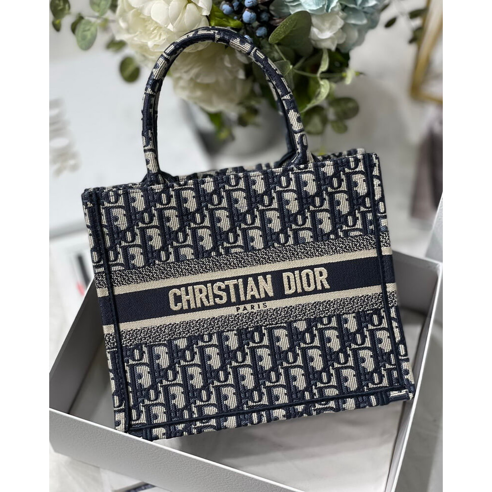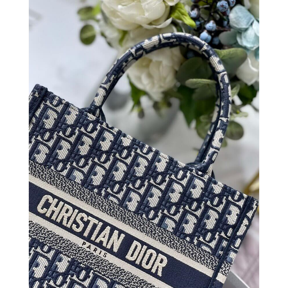 Introduced by Maria Grazia Chiuri, Creative Director of Christian Dior, the Dior Book Tote has become a staple of the Dior aesthetic. Designed to hold all the daily essentials, the style is fully embroidered with a blue Dior Oblique motif. Adorned with the ‘CHRISTIAN DIOR PARIS’ signature on the front, the small tote exemplifies the House’s signature savoir-faire and may be carried by hand.