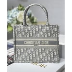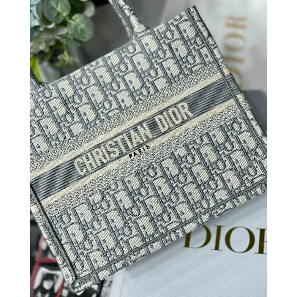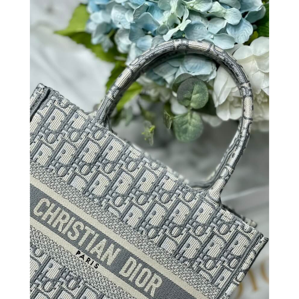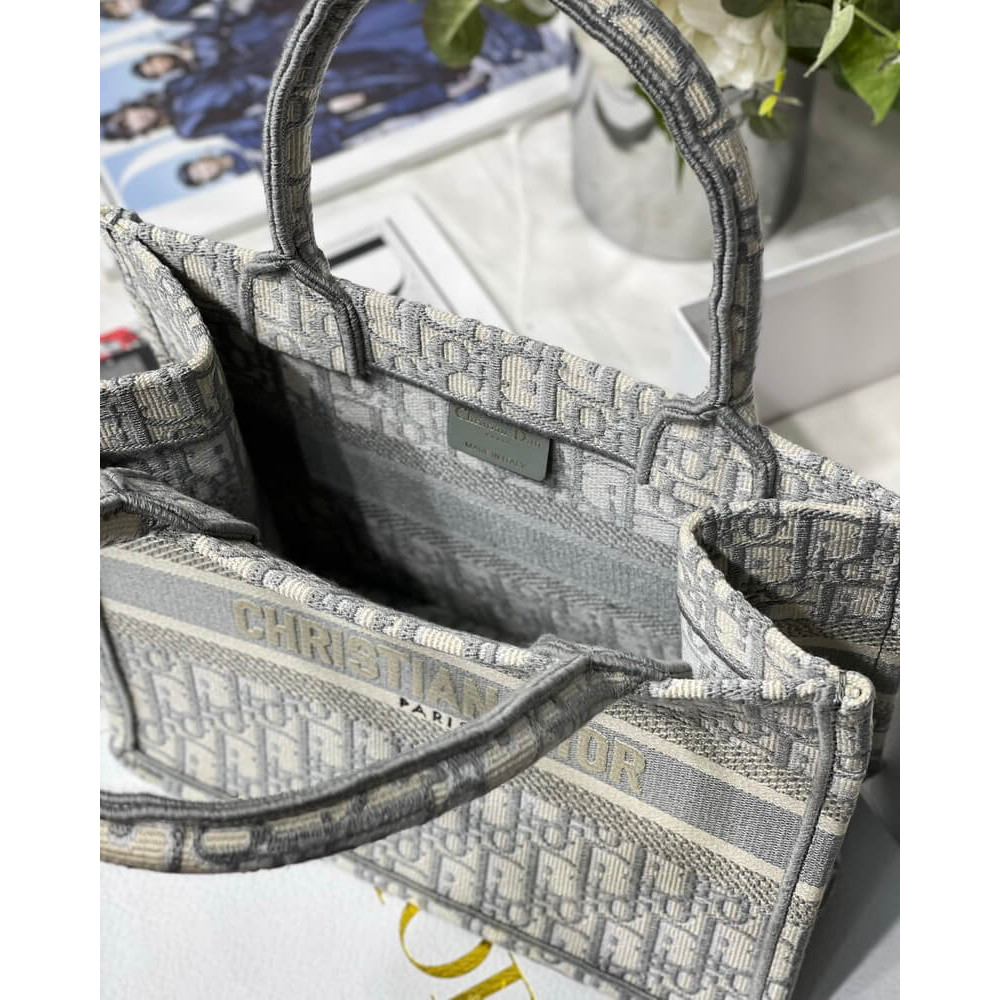 Christian Dior Small Book Tote Bag 26cm Oblique Embroidery Gray