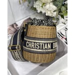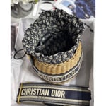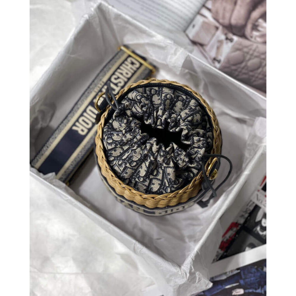 Christian Dior Wicker Basket Shoulder Bag Blue Oblique