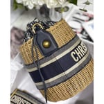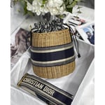 • Christian Dior Wicker Basket Shoulder Bag Blue Oblique