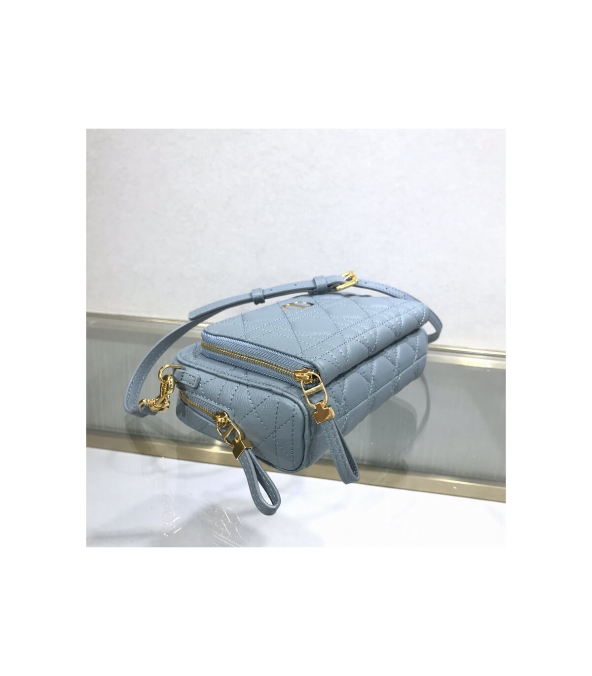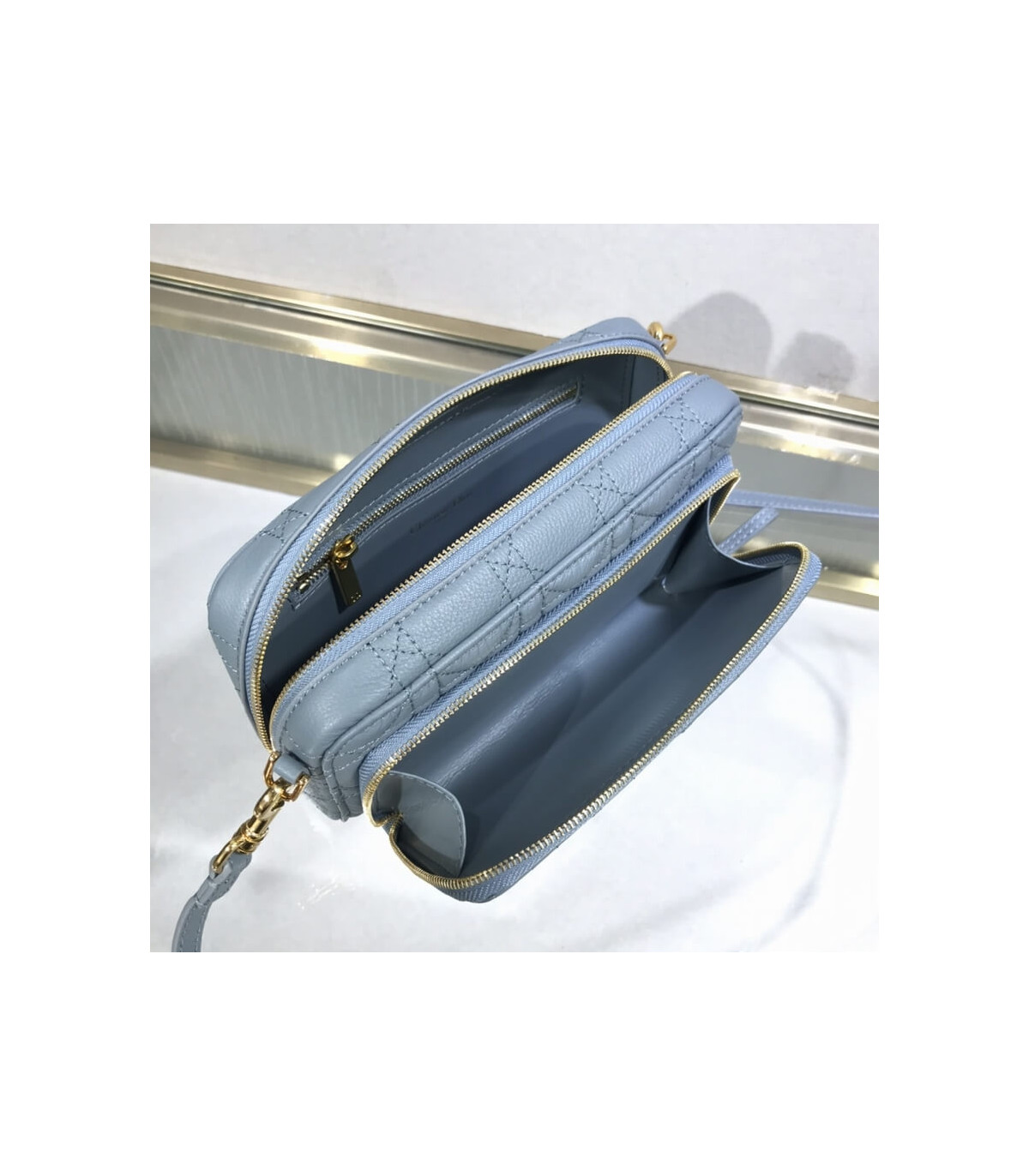�C Cloud Blue supple calfskin with Cannage topstitching