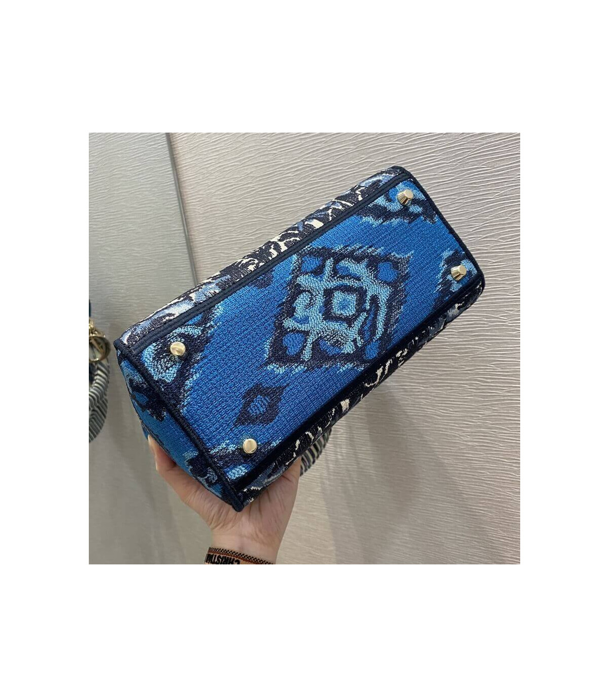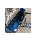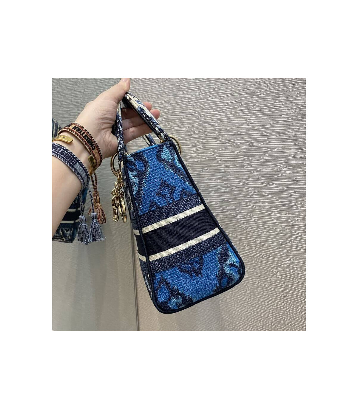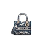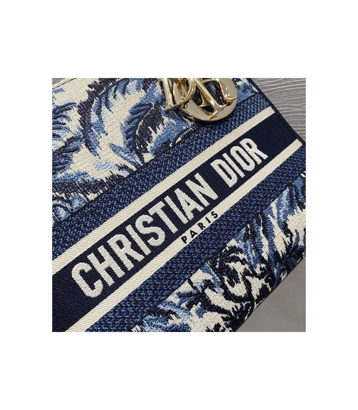 The Lady D-Lite bag combines classic elegance with House modernity. The style offers a new take on the hallmark Toile de Jouy with a variation fully embroidered with the blue Dior Palms motif. The front features a ‘Christian Dior’ signature while the thick ‘D.I.O.R.’ charms in pale gold-finish metal embellish the style with a graphic touch. Equipped with a wide, reversible, and removable embroidered shoulder strap, the medium Lady D-Lite bag can be carried by hand, worn over the shoulder or crossbody.