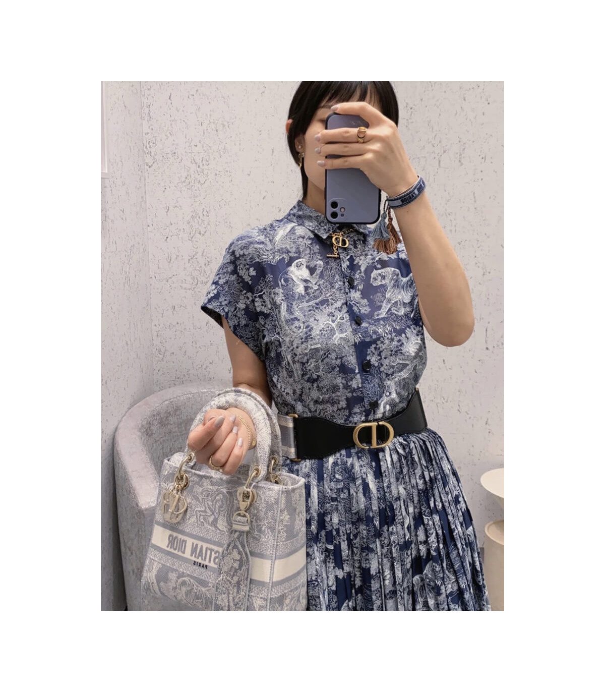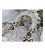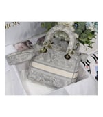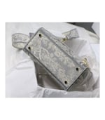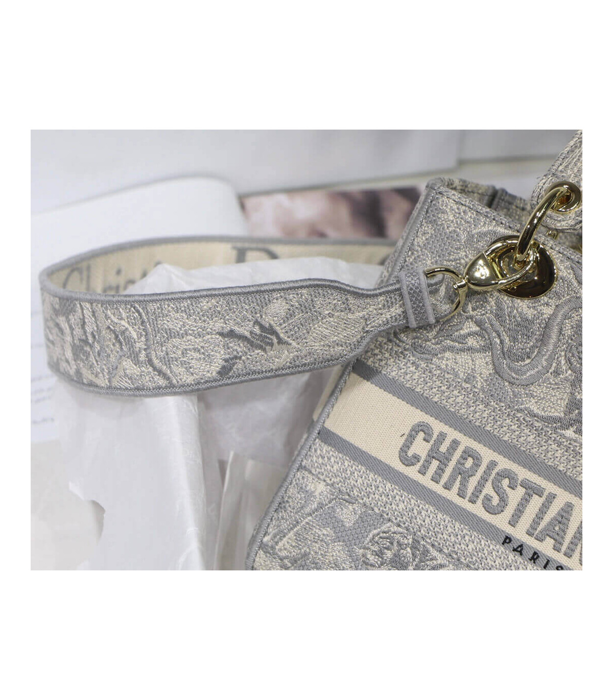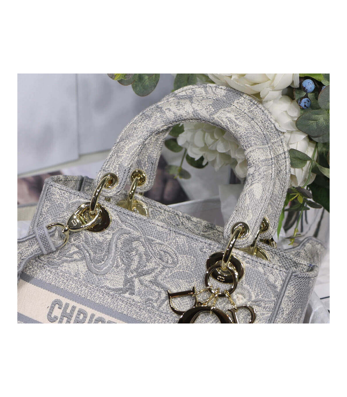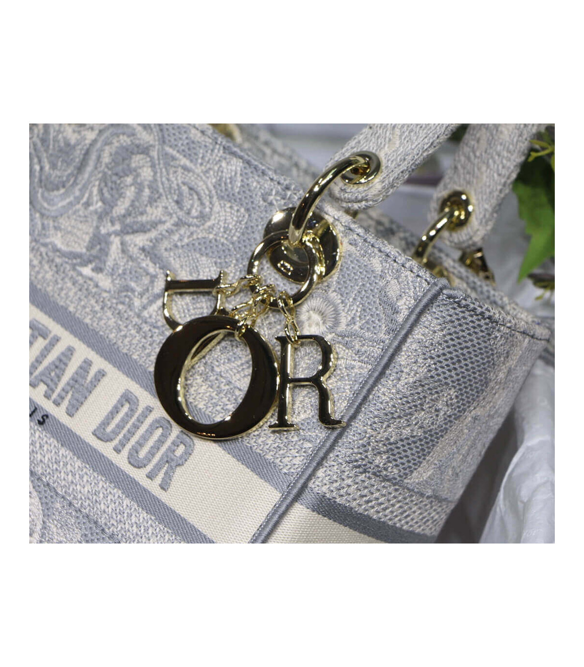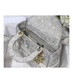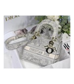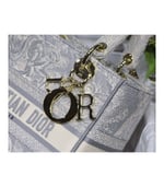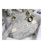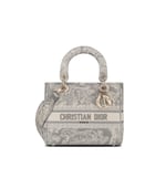 The Lady D-Lite bag combines classic elegance with House modernity. The style is fully embroidered with the lime Toile de Jouy Reverse motif, a variation of the hallmark House pattern with a play on reversed colors. The front features a ‘CHRISTIAN DIOR’ signature while the thick ‘D.I.O.R.’ charms in pale gold-finish metal enhance the silhouette. Equipped with a wide, reversible and removable embroidered shoulder strap, the medium Lady D-Lite bag can be carried by hand, worn over the shoulder or crossbody.