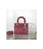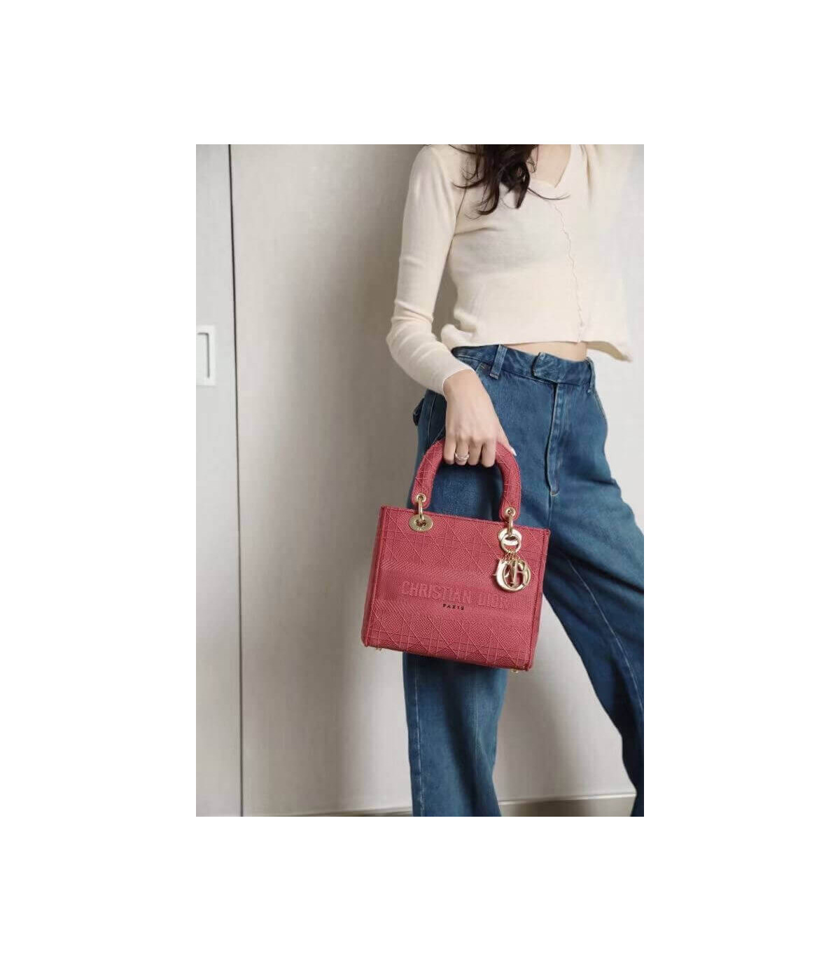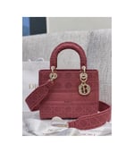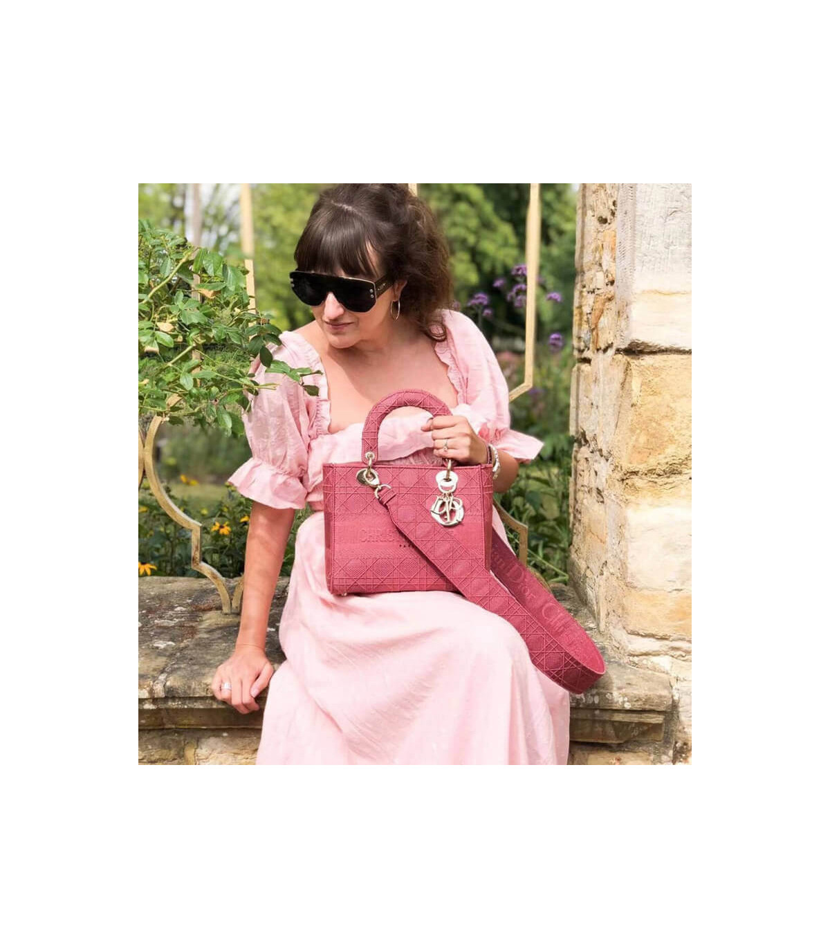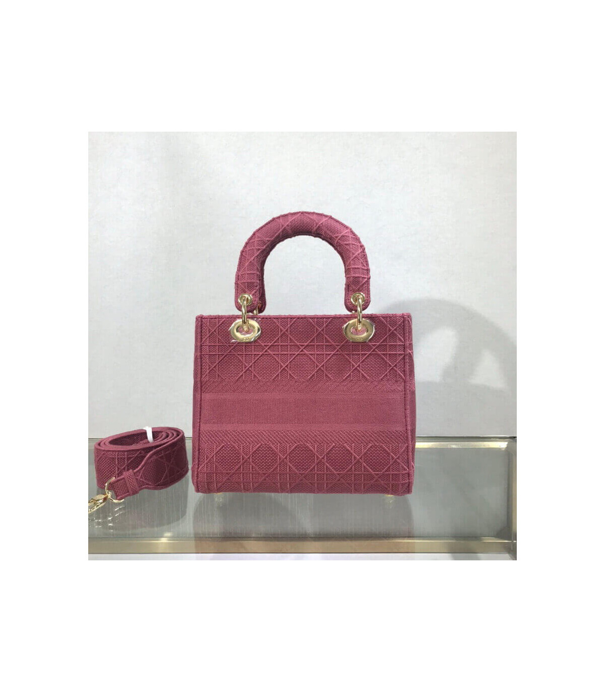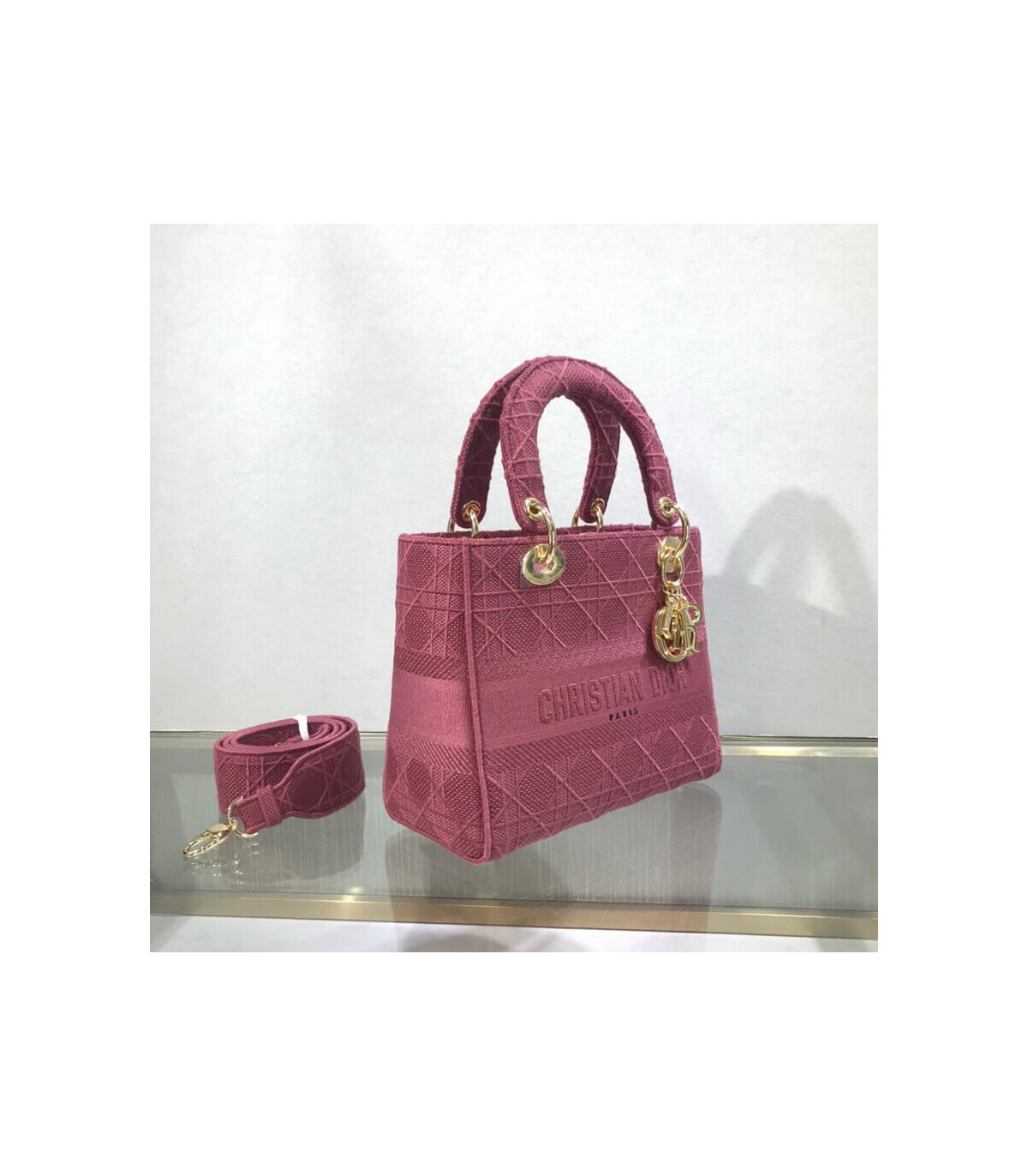 • Dior Medium Lady D-Lite Bag Mallow Rose Cannage Embroidered