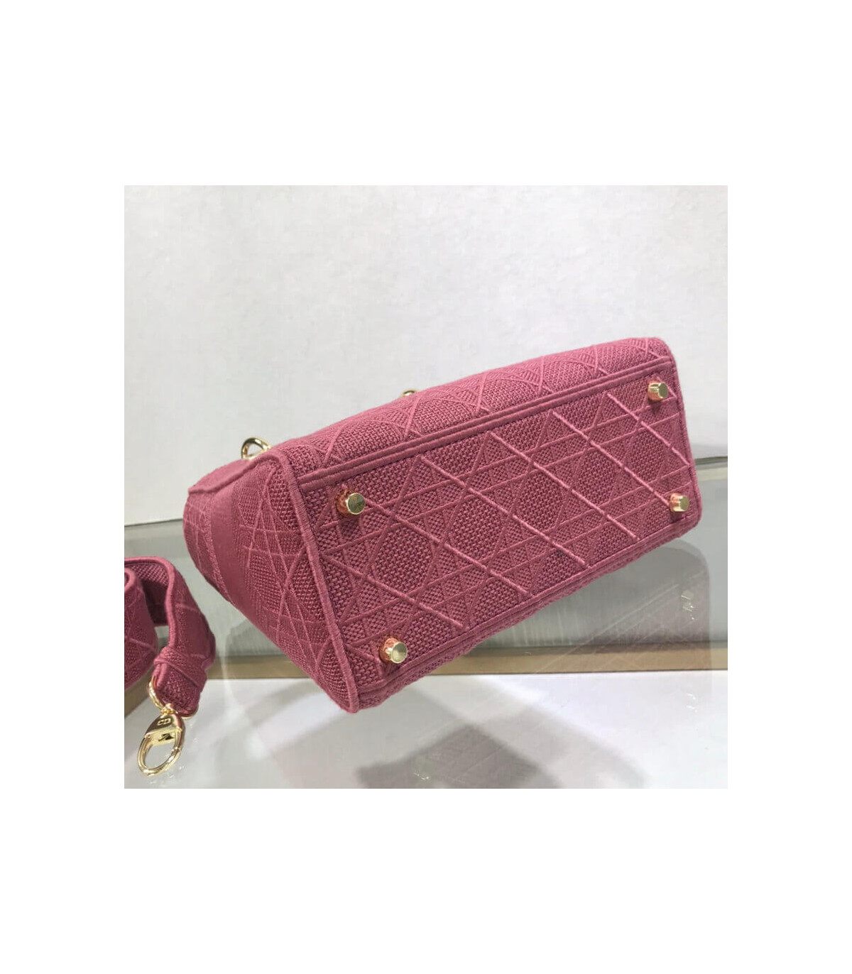 Dior Medium Lady D-Lite Bag Mallow Rose Cannage Embroidered