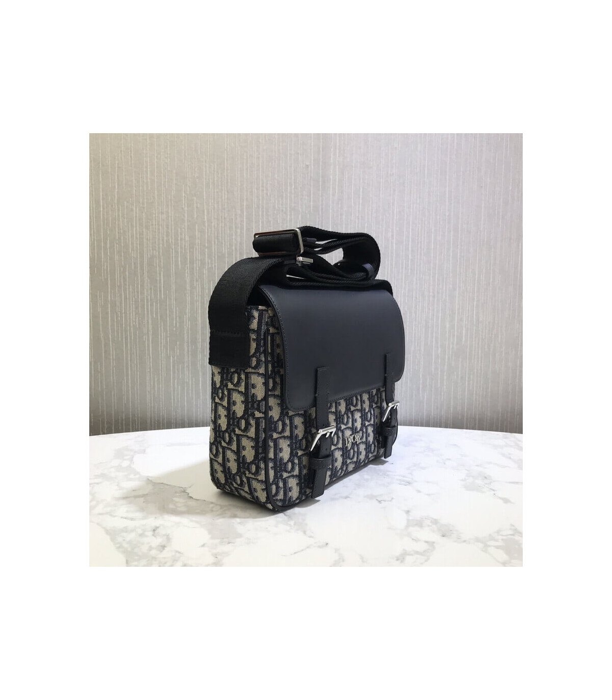 The Dior Messenger Bag is inspired by the traditional satchel. It is crafted from iconic Dior Oblique canvas with a calfskin flap adorned with a metallic ‘DIOR’ signature. The decorative buckle closures are magnetic for easy access, and the nylon shoulder strap is adjustable. The roomy interior has a small pocket, making this practical bag suitable for all smaller school items.