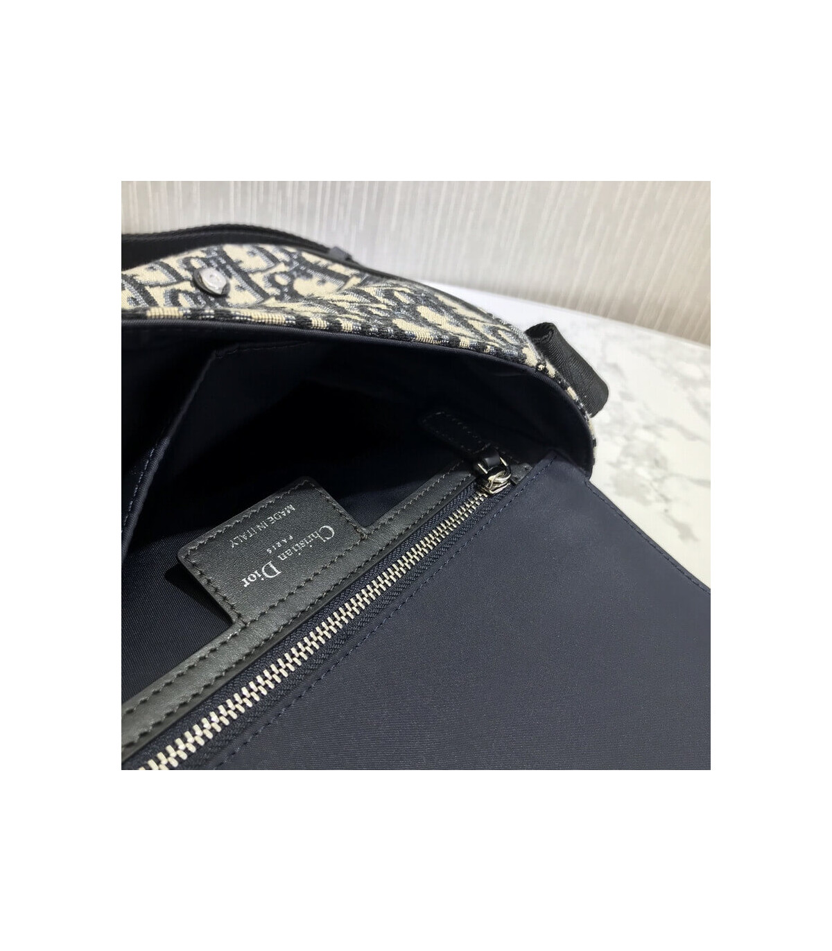 �C Blue Dior Oblique canvas and calfskin